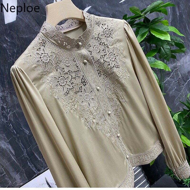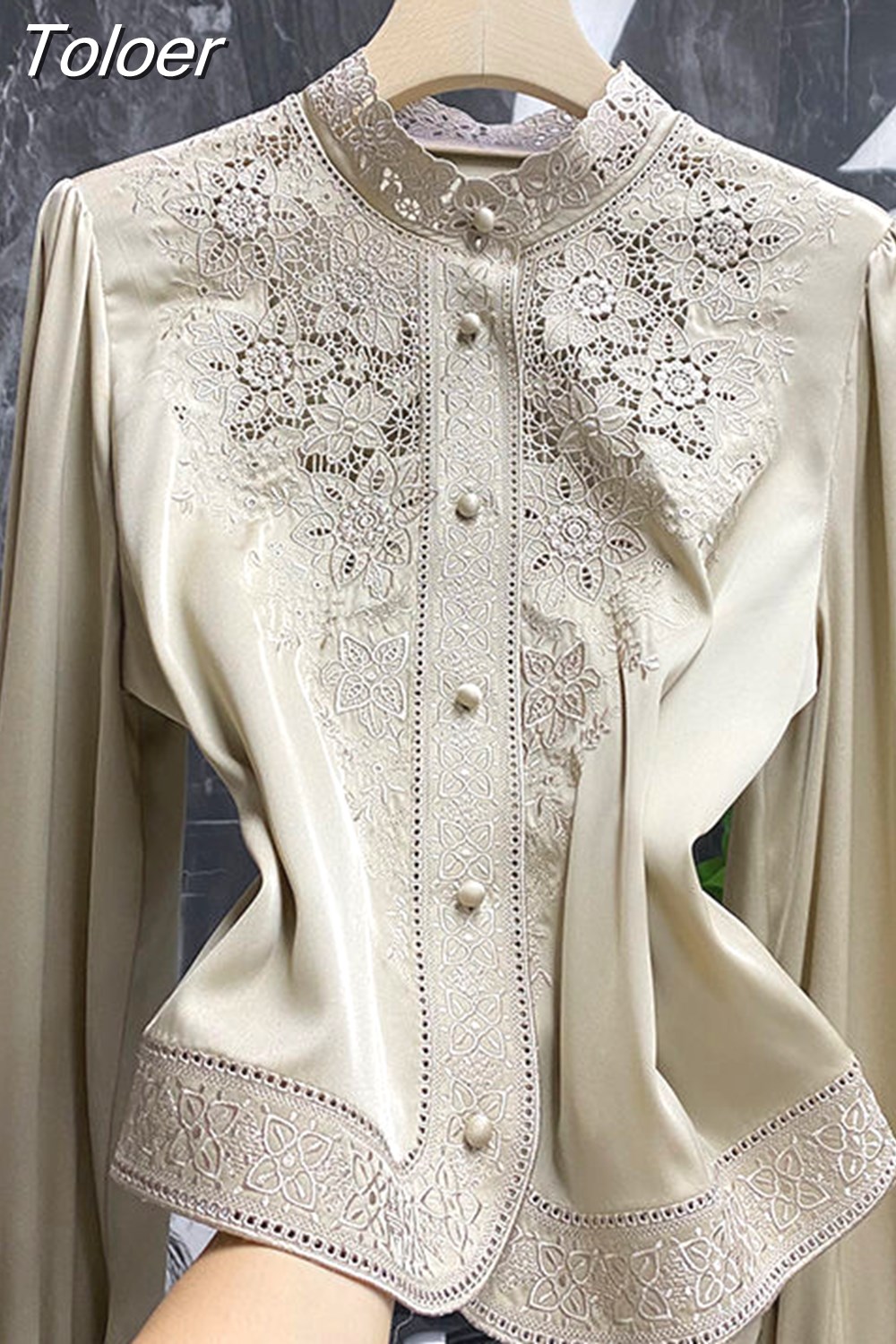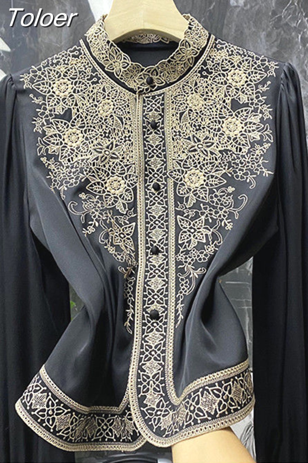 Toloer Blouses Womens Clothes Tops Vintage Blusas De Mujer Stand Collar Embroidery Blouse Korean Fashion Long Sleeve Shirt
