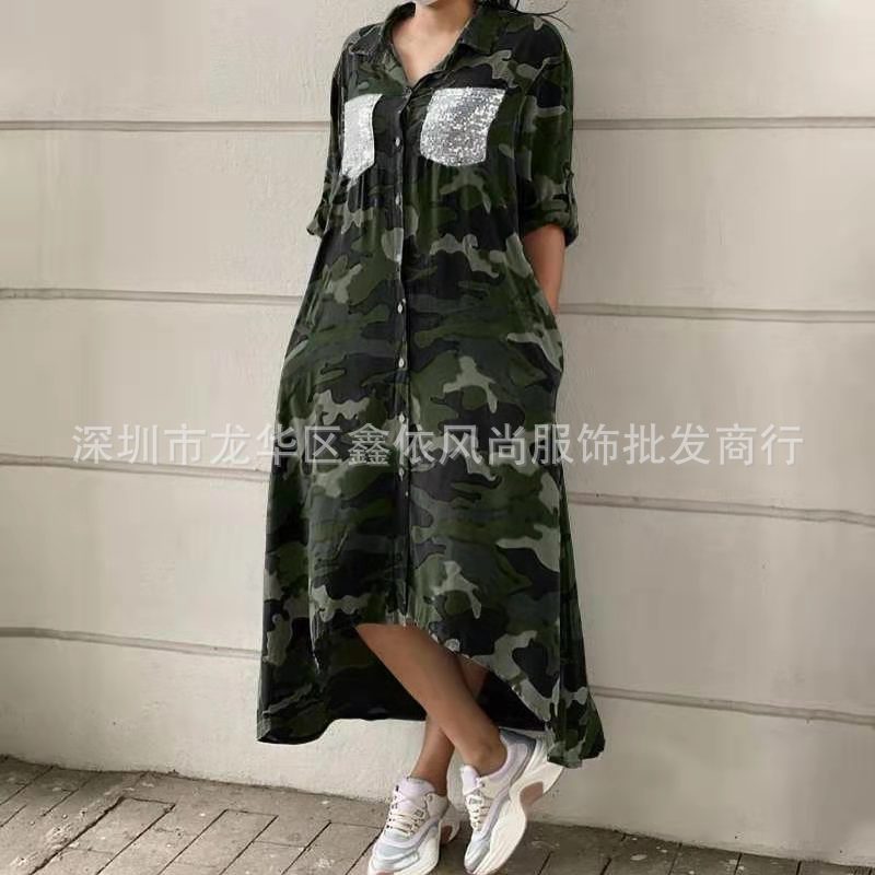 2021 new women's European and American casual fashion camouflage women's overcoat coat