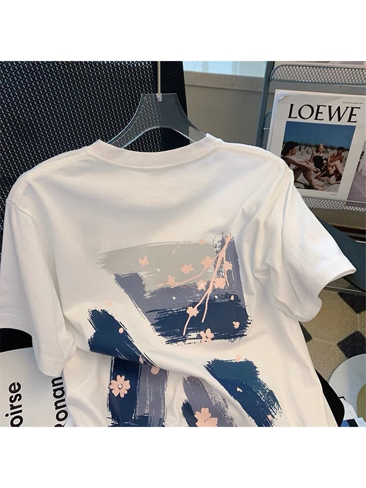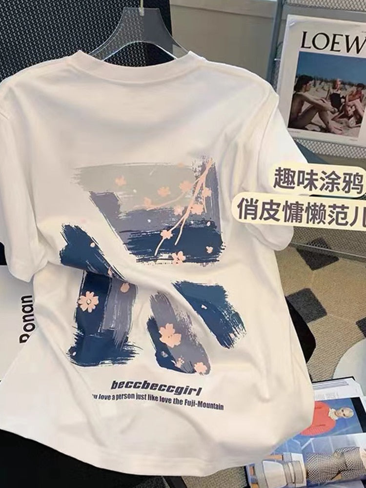2022 New Y2k Tops E-girl Summer Print T-shirt Casual Fashion Oversize Short Sleeve White Tee O-neck All-Match Clothes Women Tide