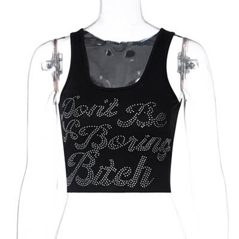 2022 One-Shoulder Sequined Letters Print Sleeveless Sexy Crop Top Summer Women Fashion Streetwear Outfits Tees