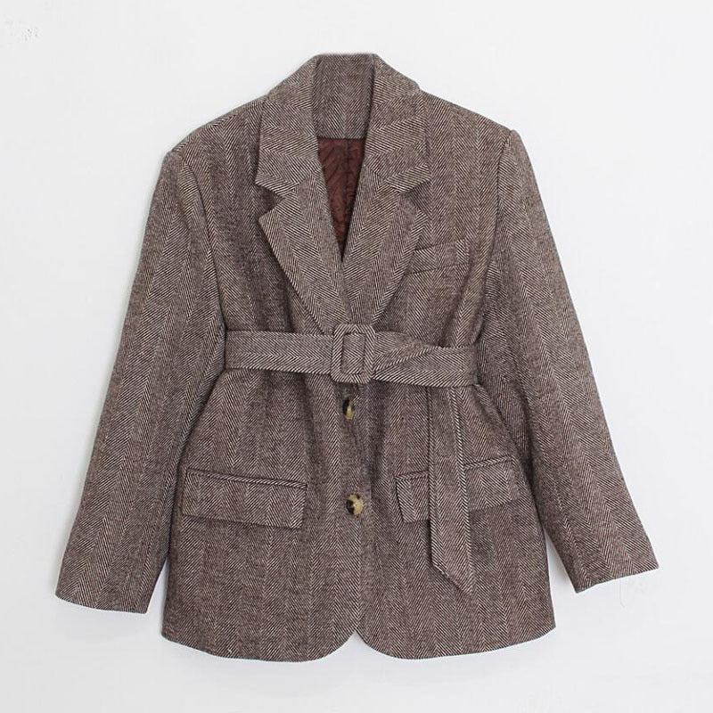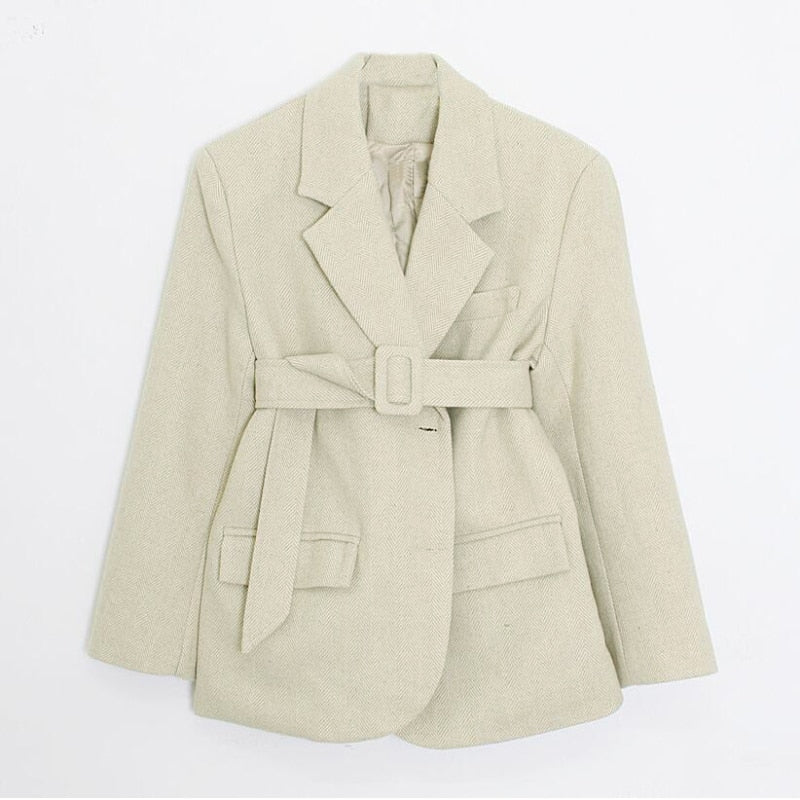 Aachoae Women Autumn Winter Wool Coats With Belt Casual Turn Down Collar Long Sleeve Pocket Outerwear Female Elegant Office Coat