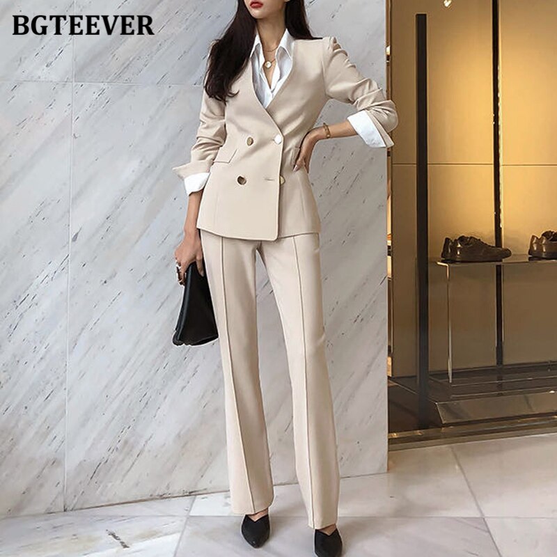 BGTEEVER Elegant Women Blazer Suit Autumn Office Ladies Pant Suits V-neck Belted Blazer & Suit Pants 2020 Work Wear Female Sets
