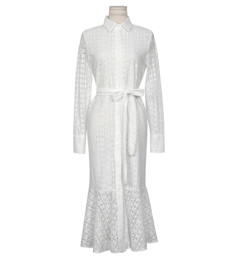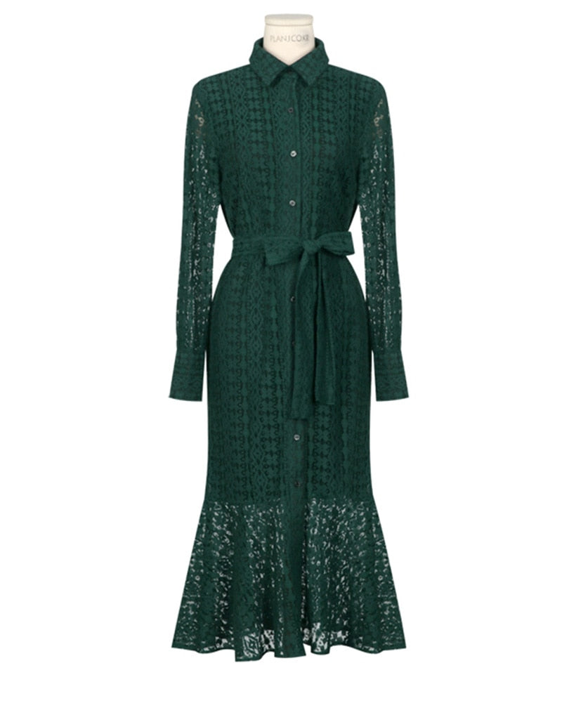 BGTEEVER Vintage Hollow-out Lace Women Long Dress Bandage Elegant Mermaid Female Dress 2021 Full Sleeve Vestidos