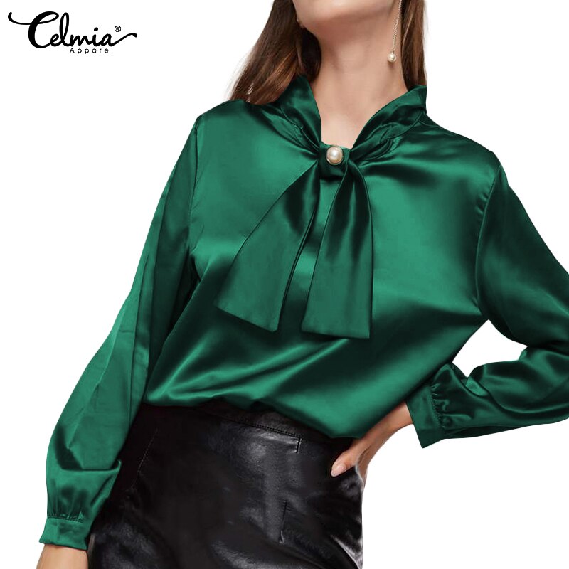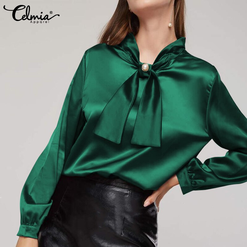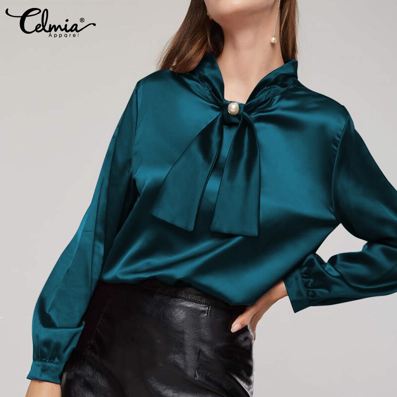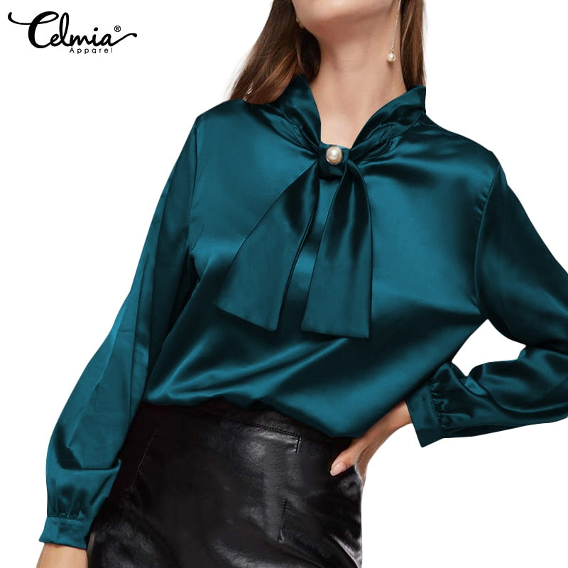 Celmia Women Elegant Satin Blouse 2022 Fashion Bow Tie Office Tops Long Sleeve Casual Autumn Slik Shirts Oversized Party Blusas