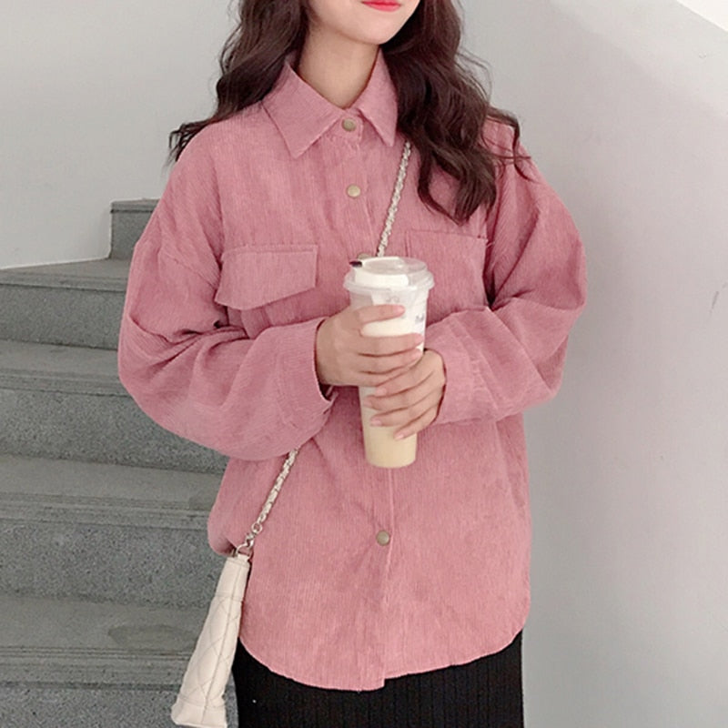 Fashion Corduroy Jacket Women Coat Casual Vintage Single Breasted Turn Down Collar Long Sleeve Pocket Solid Button Clothes 10784
