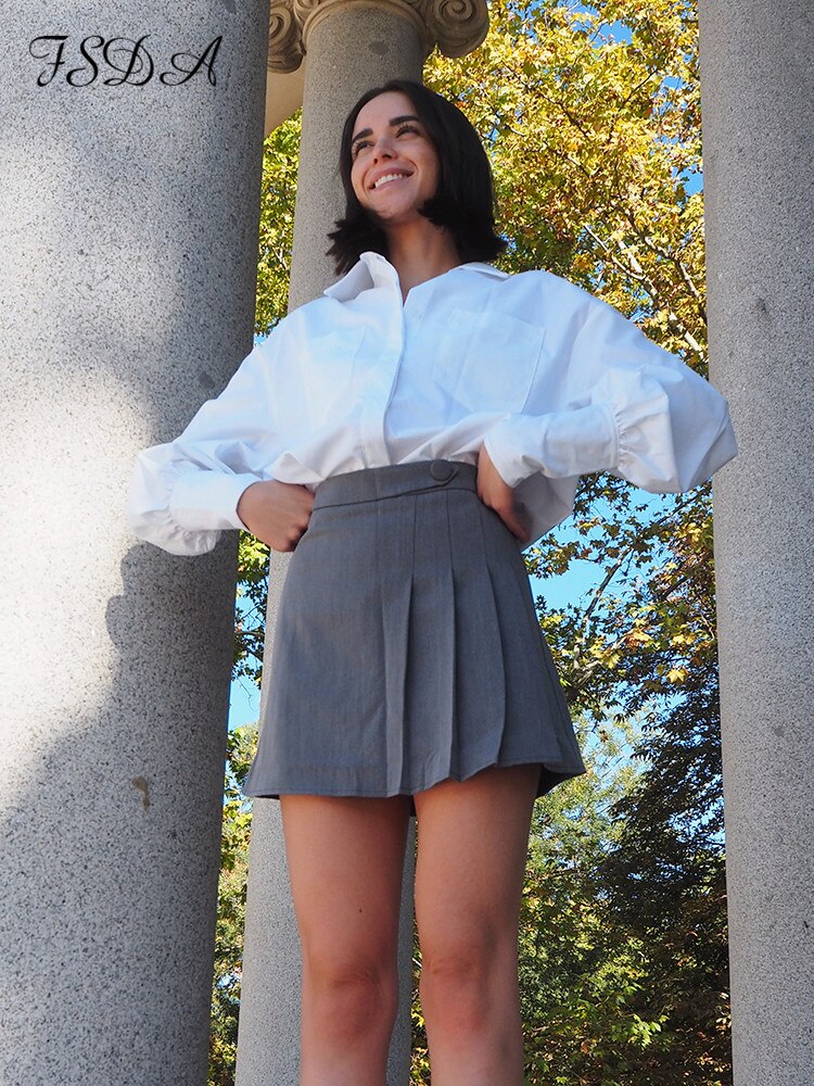 FSDA V Neck 2020 White Blouse Shirts Long Puff Sleeve Loose Black Office Autumn Sexy Elegant Vintage Oversized Shirts Top Ladies