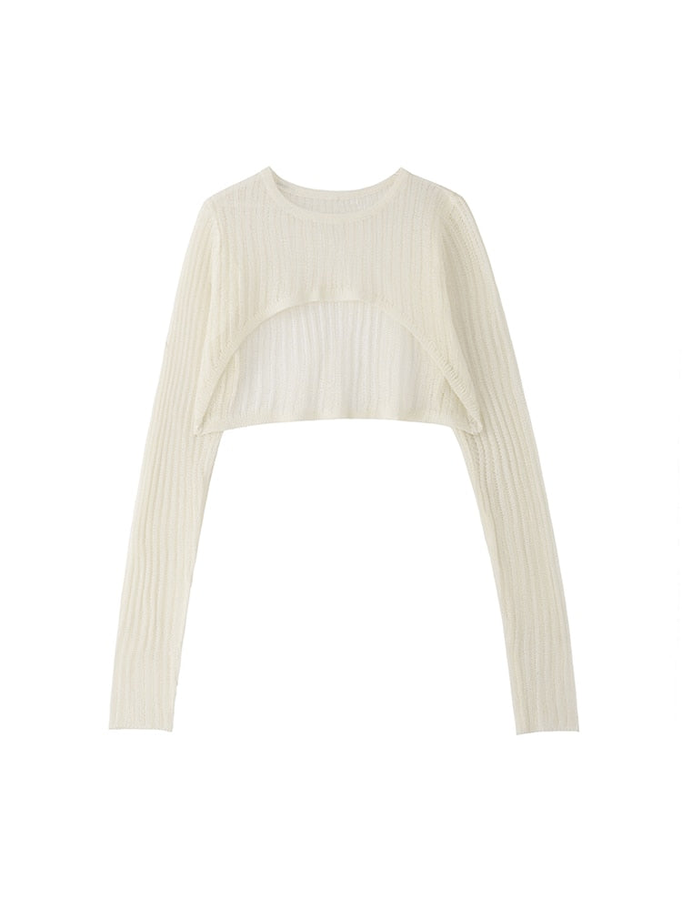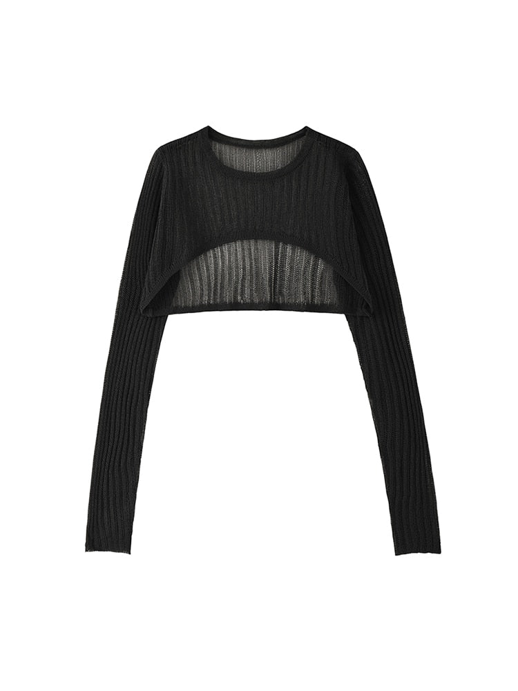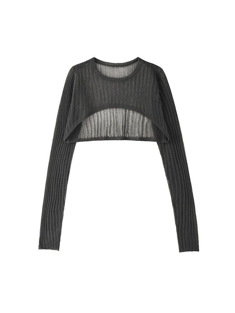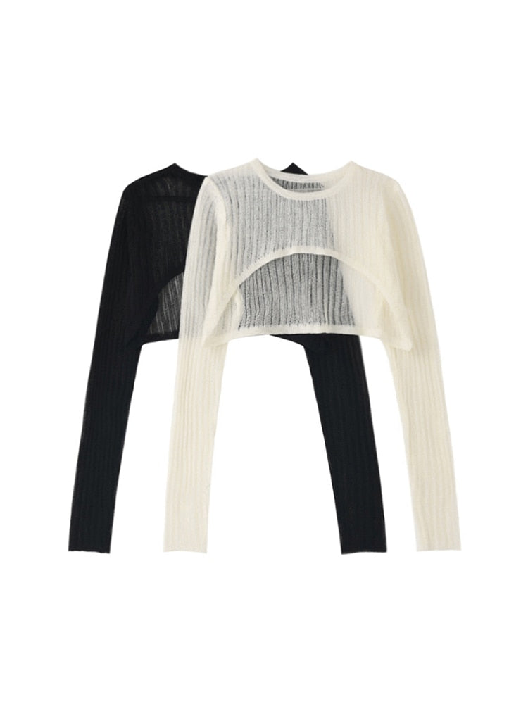 New Spring Autumn Stylish Korean Loose Casual Sexy Thin O-Neck Crop Tops long sleeve Blouse Knitted Pullovers Party Streetwear