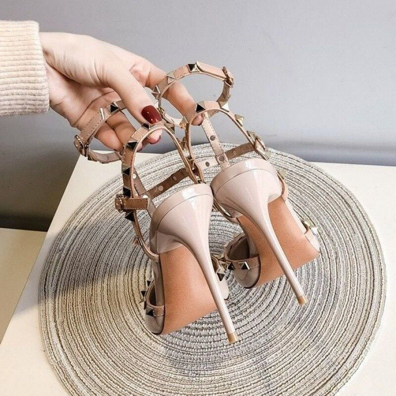 Rivet nude high-heeled shoes women stiletto spring and summer new pointed toe all-match sexy women's single shoes