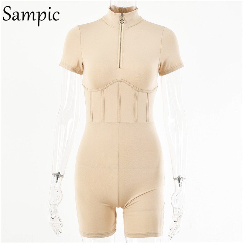 Sampic Sexy Women Skinny Short Biker Sport Rompers Short Sleeve Ribbed Jumpsuit 2020 Autumn Playsuit Body Femme Corset Tops