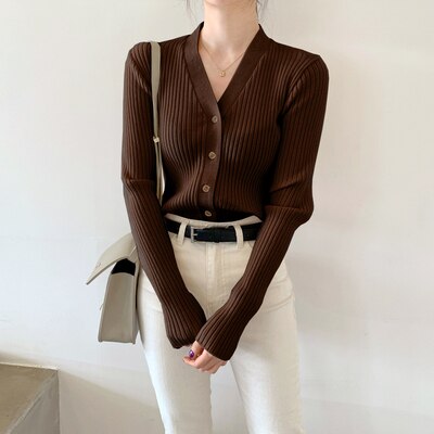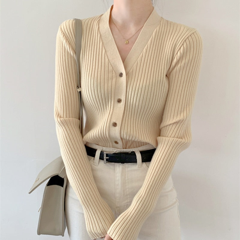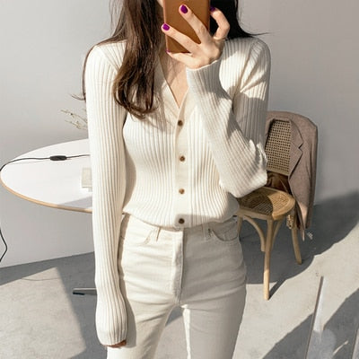 Spring Summer Korean Style Knitted Sweaters Women Buttons Cardigan Slim Ladies Fashion Long Sleeve Top