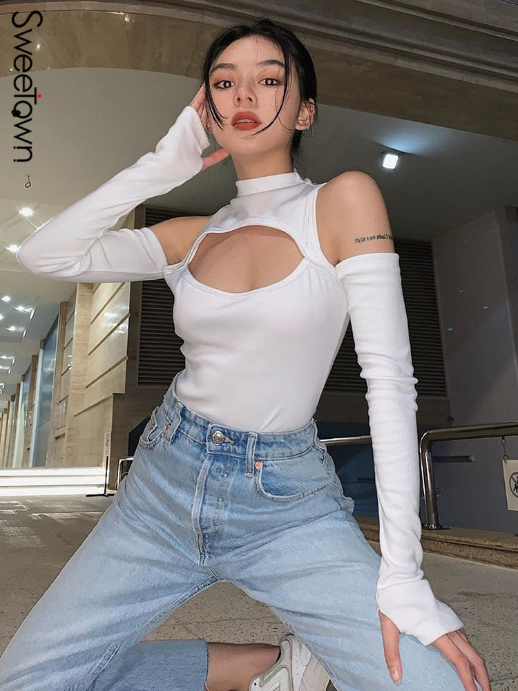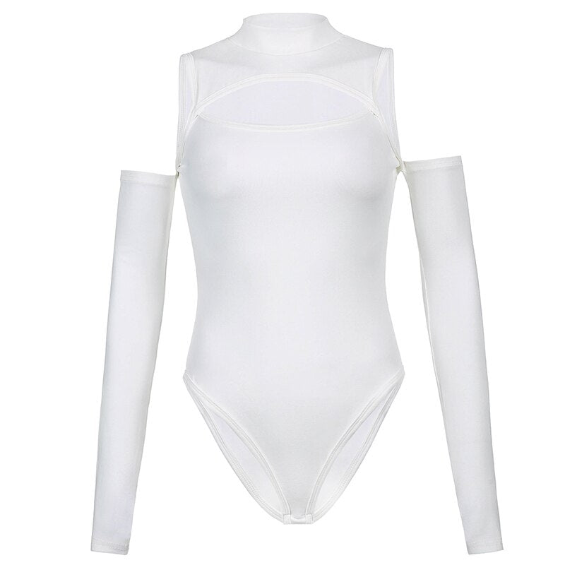 Sweetown Cut Out Sexy Bodysuit Woman Black Plain Turtleneck Bodies Mujer Shirt Autumn Winter Long Sleeve Bodycon Bodysuits 2021