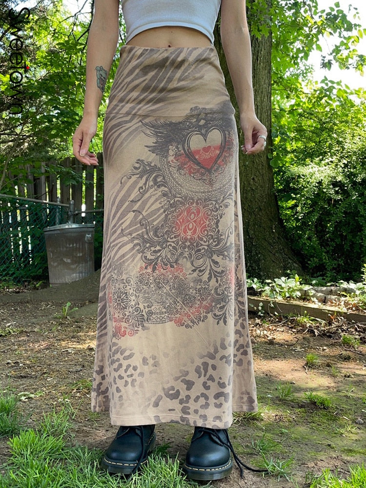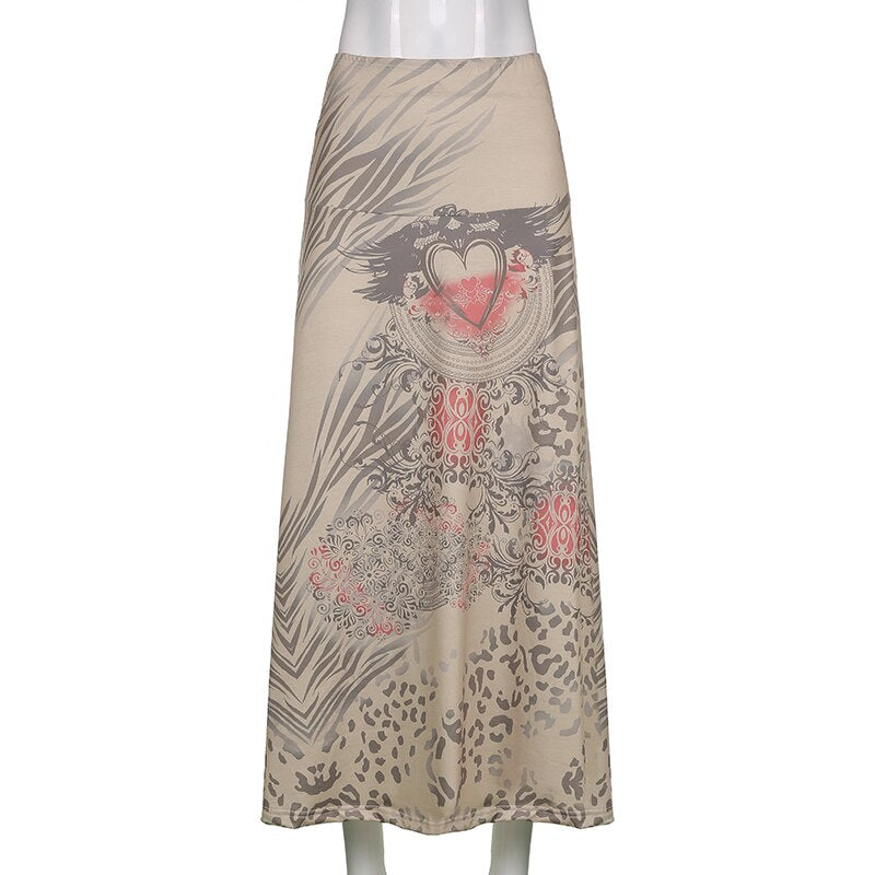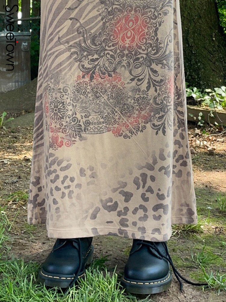 Sweetown Fairycore Grunge Y2K Midi Skirts Womens Vintage Floral Print Cute Girl Faldas Clothes Low Waist Kawaii Long Skirt 90s