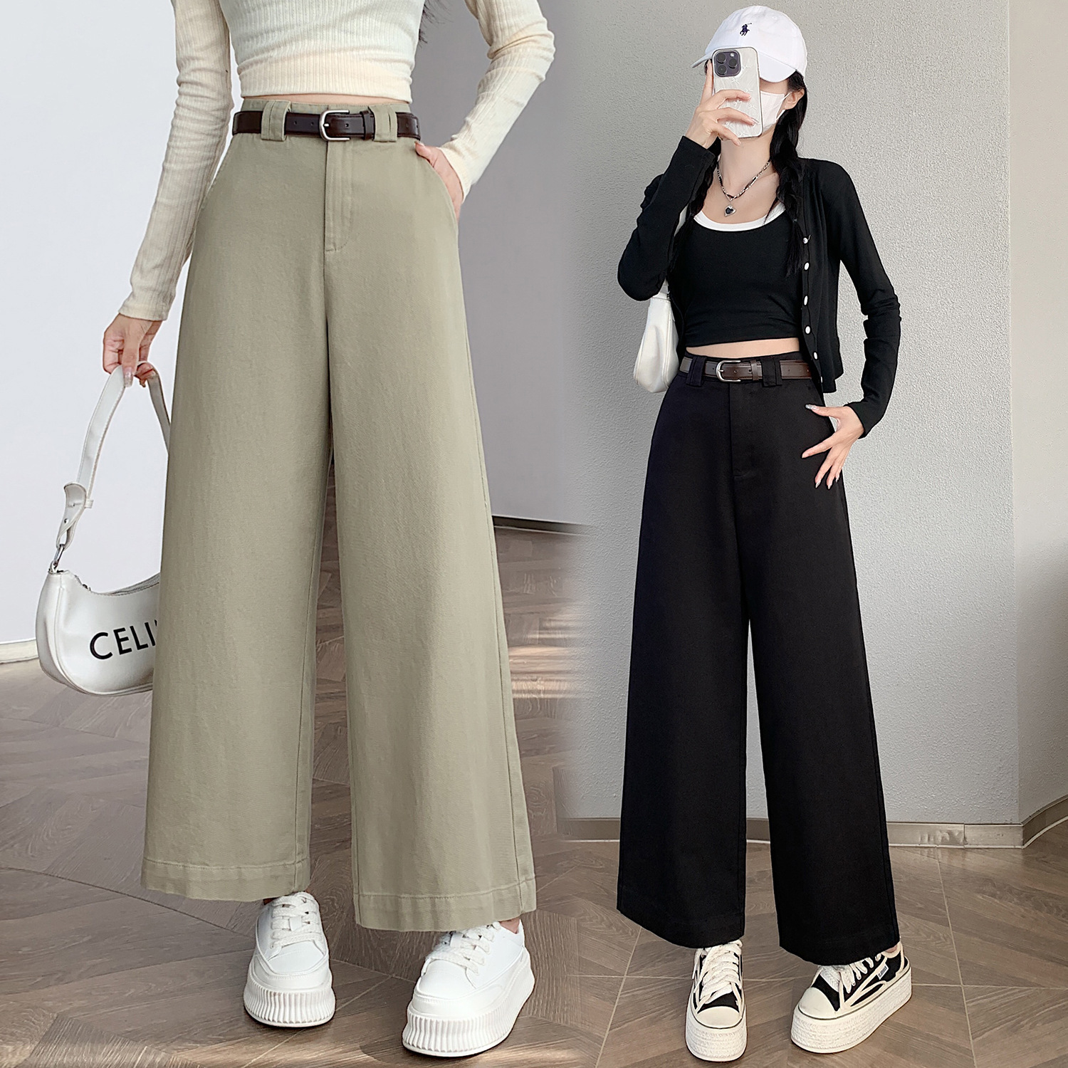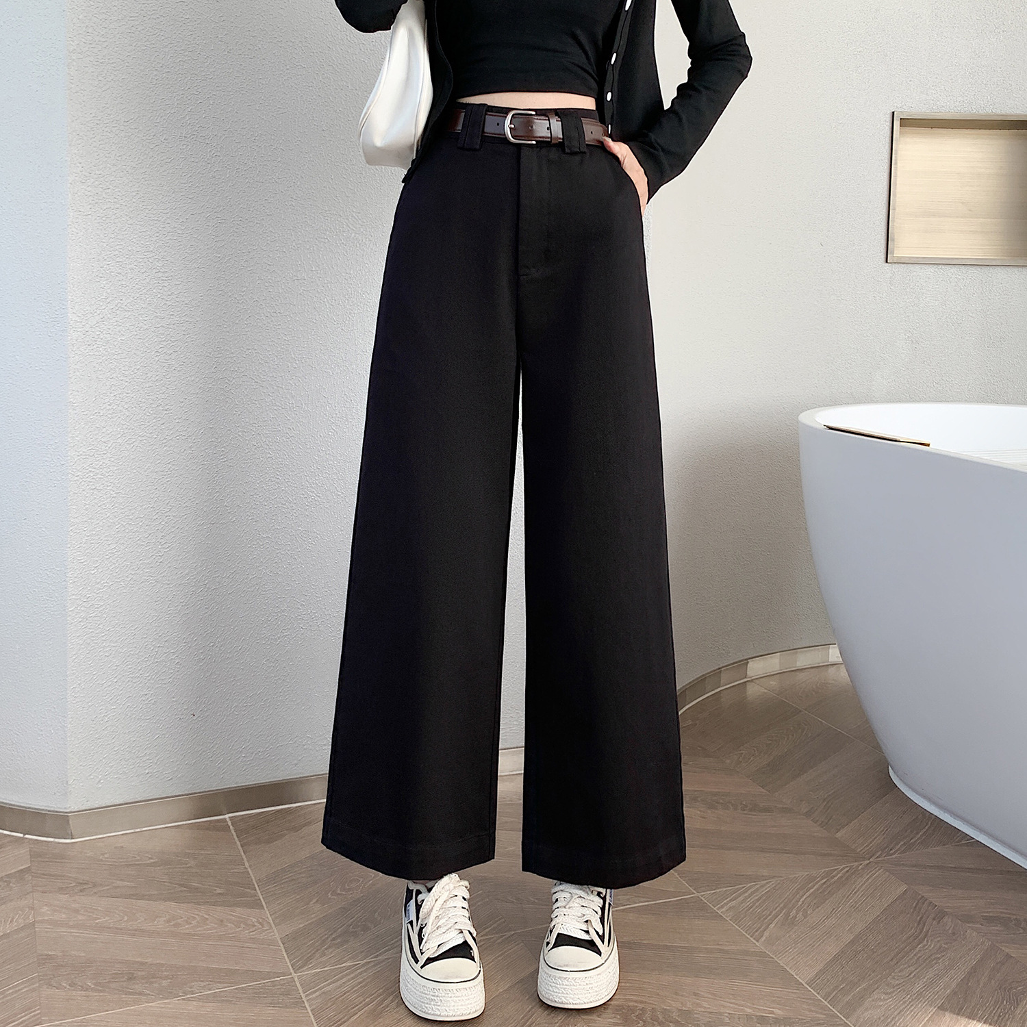 Toloer Coffee Color Cargo Pants Children Autumn And Winter 2025 New High Waist Loose Small Nine Points Straight Tube Narrow Version Wide Leg Pants-Outfit Ideas