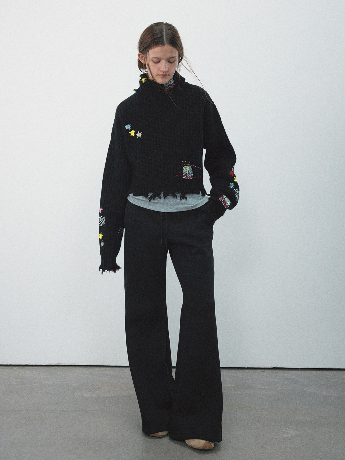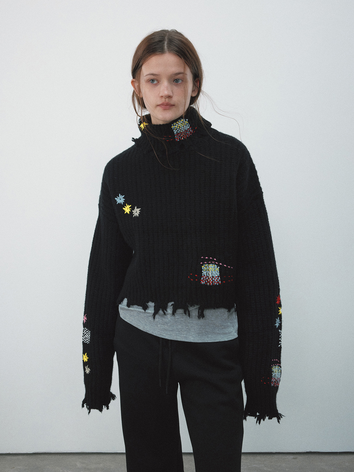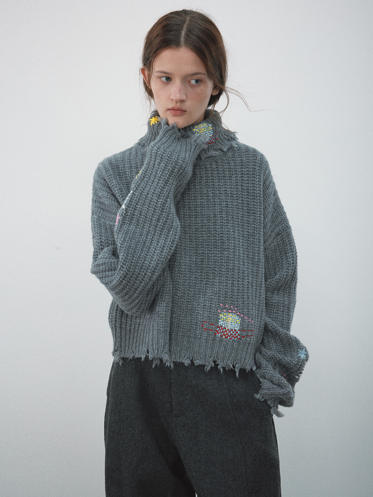Toloer [Daihe] Winter New Casual High Collar Full Wool Fun Embroidery Short Woolen Jacket H7932-Outfit Ideas