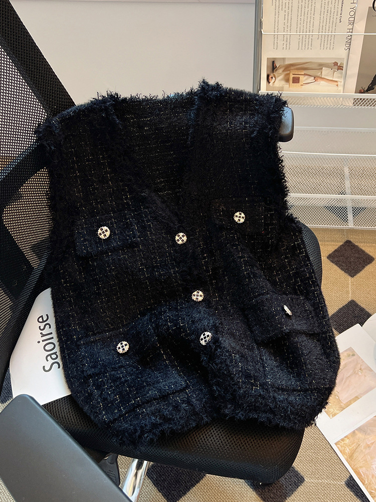 Toloer French Socialite Small Fragrant Wind Hair Edge Vest Vest Female Spring And Autumn Design Sense Temperament V Collar Horse Clip Jacket Jacket-Outfit Ideas