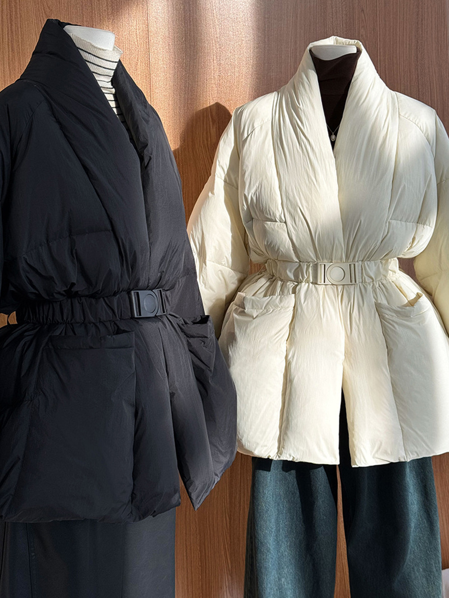Toloer High Luxury White Duck Down In The Long Down Jacket Female 2024 Winter Fashion Waist Show Thin And Thick V-Neck Coat Tide-Outfit Ideas