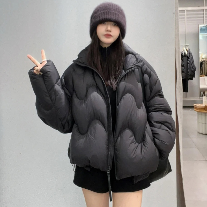 Toloer Jiangnan Home Wave Down Jacket Female Short Money Standing Collar Add Thick Cloud Puff 90 White Duck Velvet Winter New Coat Tide-Outfit Ideas