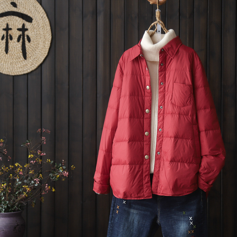 Toloer Literary Pure Color Shirt Collar Light Down Jacket Shirt Female Autumn And Winter 2024 New White Duck Down Fashion Down Jacket Coat-Outfit Ideas