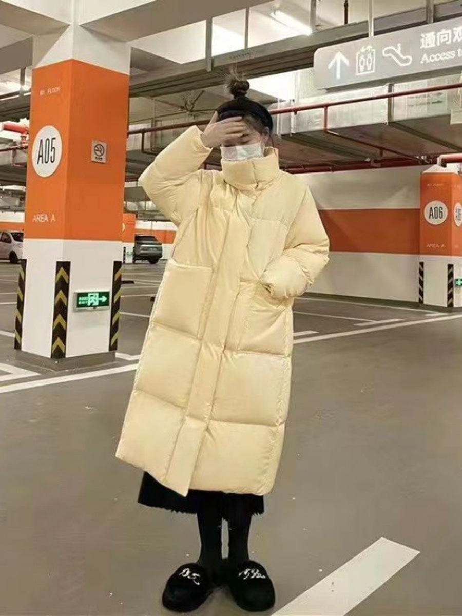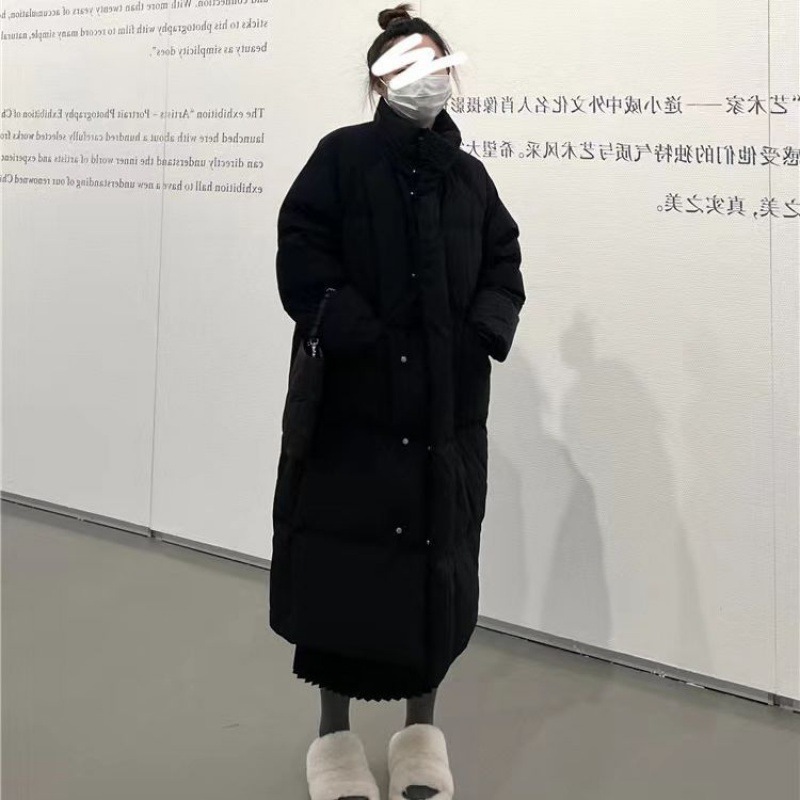 Toloer Standing Collar Long White Duck Down Down Jacket Female 2024 Winter New Thick Large Pocket Over The Knee Loose Warm Coat-Outfit Ideas