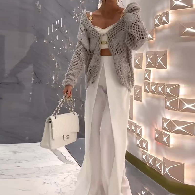 Toloer Toloer 2023 New Solid Color Fashion Hollow-Out Sweater Fashion Versatile Long Sleeve Sweater-Outfit Ideas