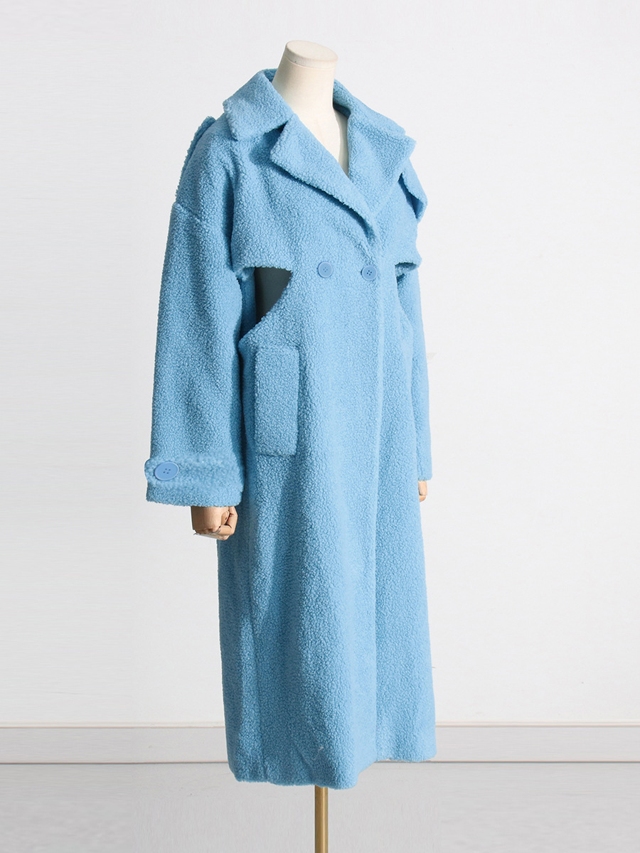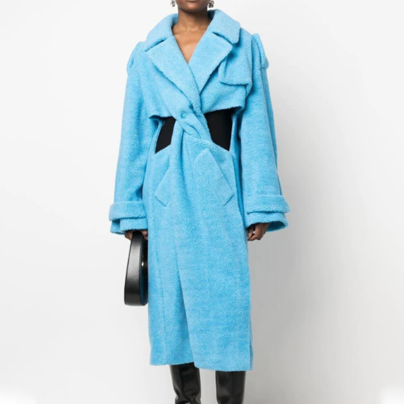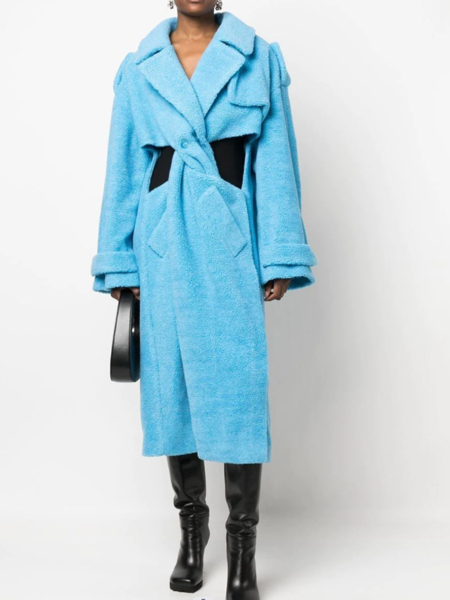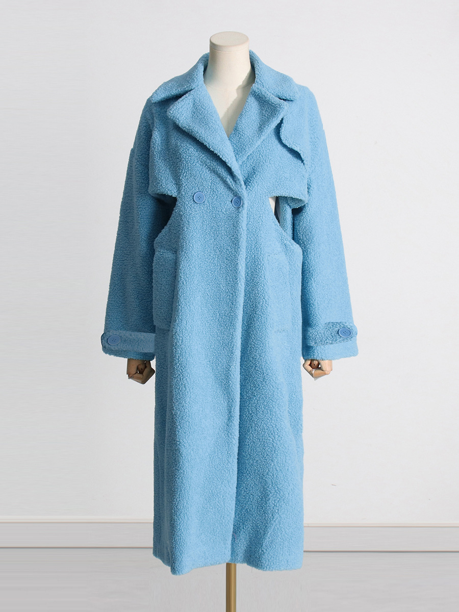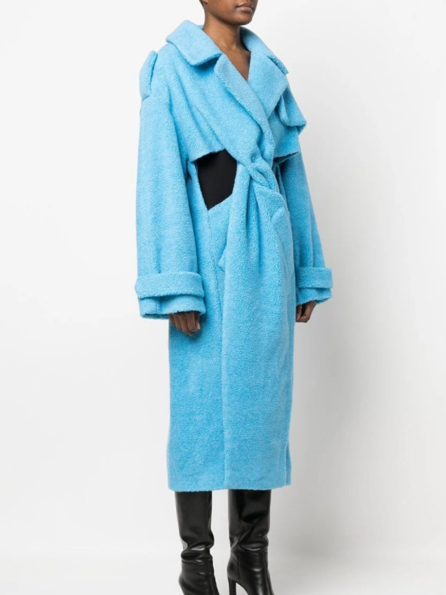 Toloer Toloer 2024 New Fashion Hollow Design Sense Kink Waist Show Thin Long Blue Plush Coat Female-Outfit Ideas