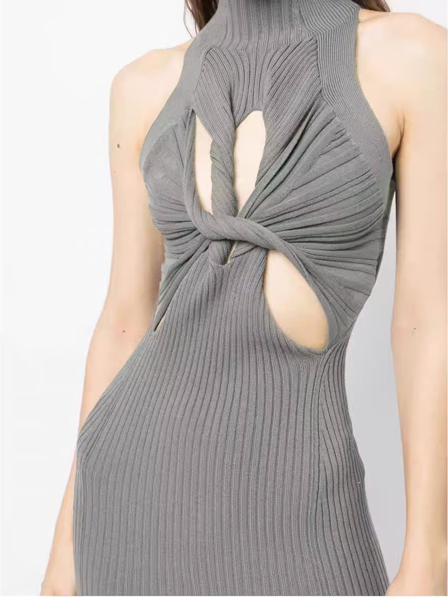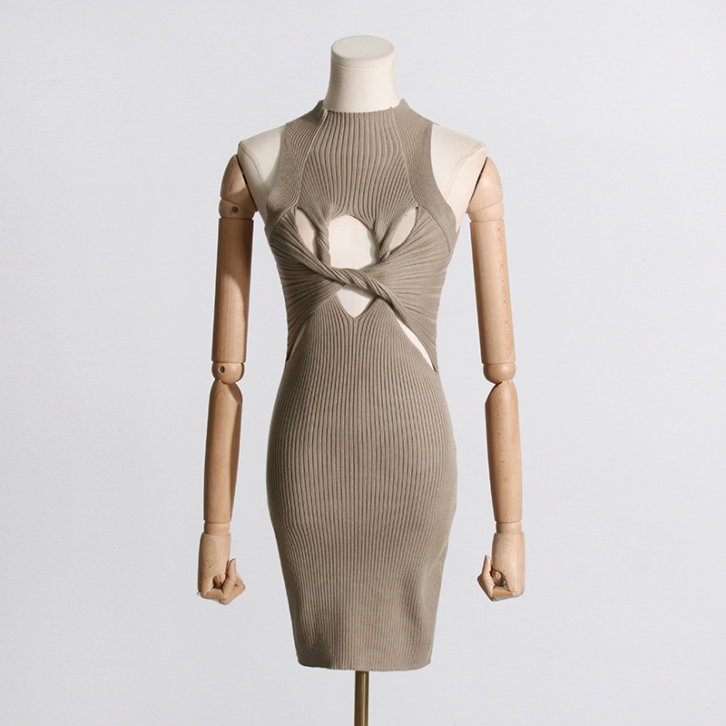 Toloer Toloer 2024 New Hollow Out Kink Design Sense Slim Show Thin Knitting Sleeveless Vest Skirt Female Sense Dress-Outfit Ideas