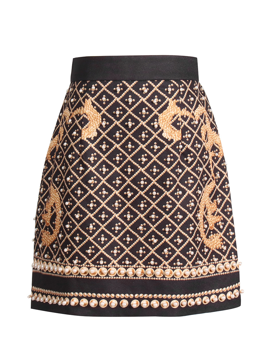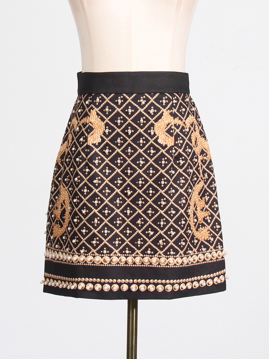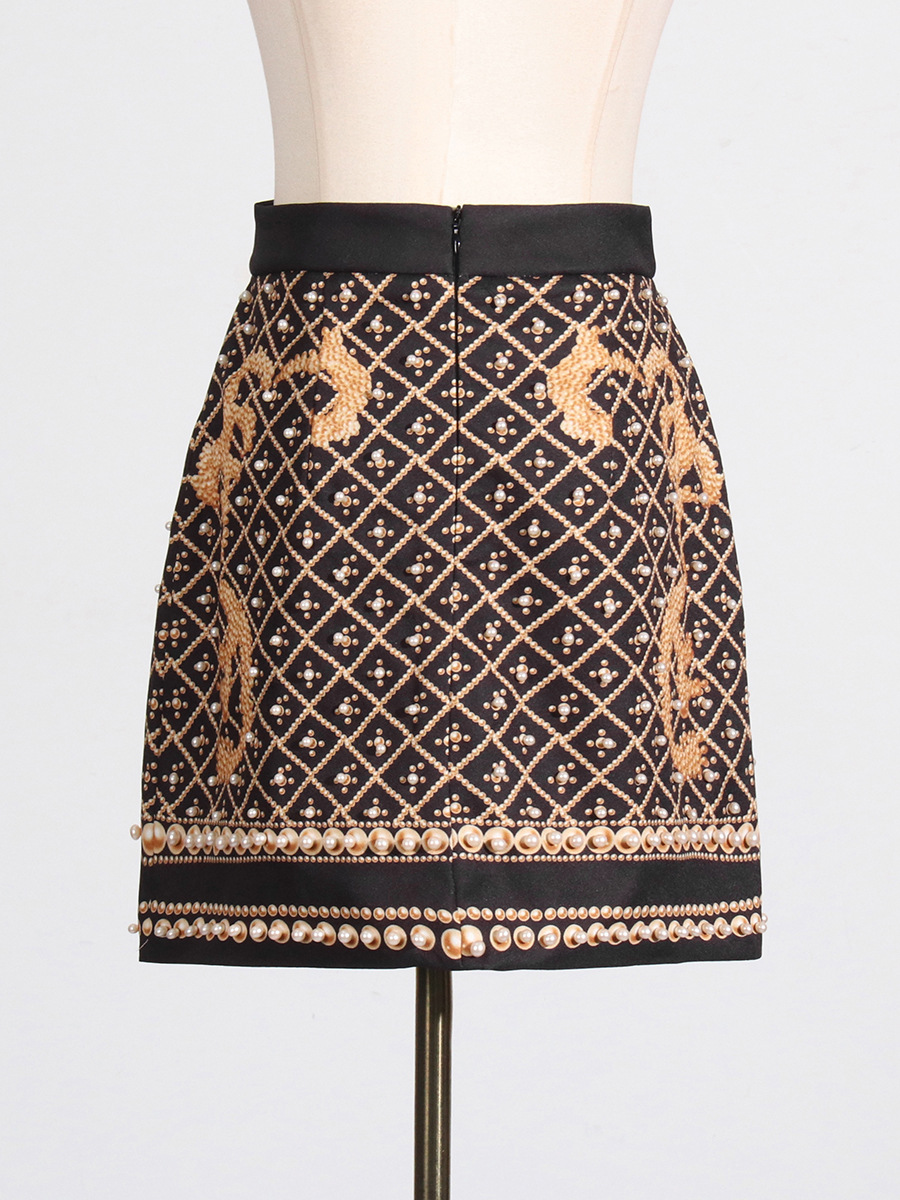 Toloer Toloer 2024 New Style Retro Print Nail Bead High Waist Thin Design Sense Short A-Line Skirt Woman-Outfit Ideas