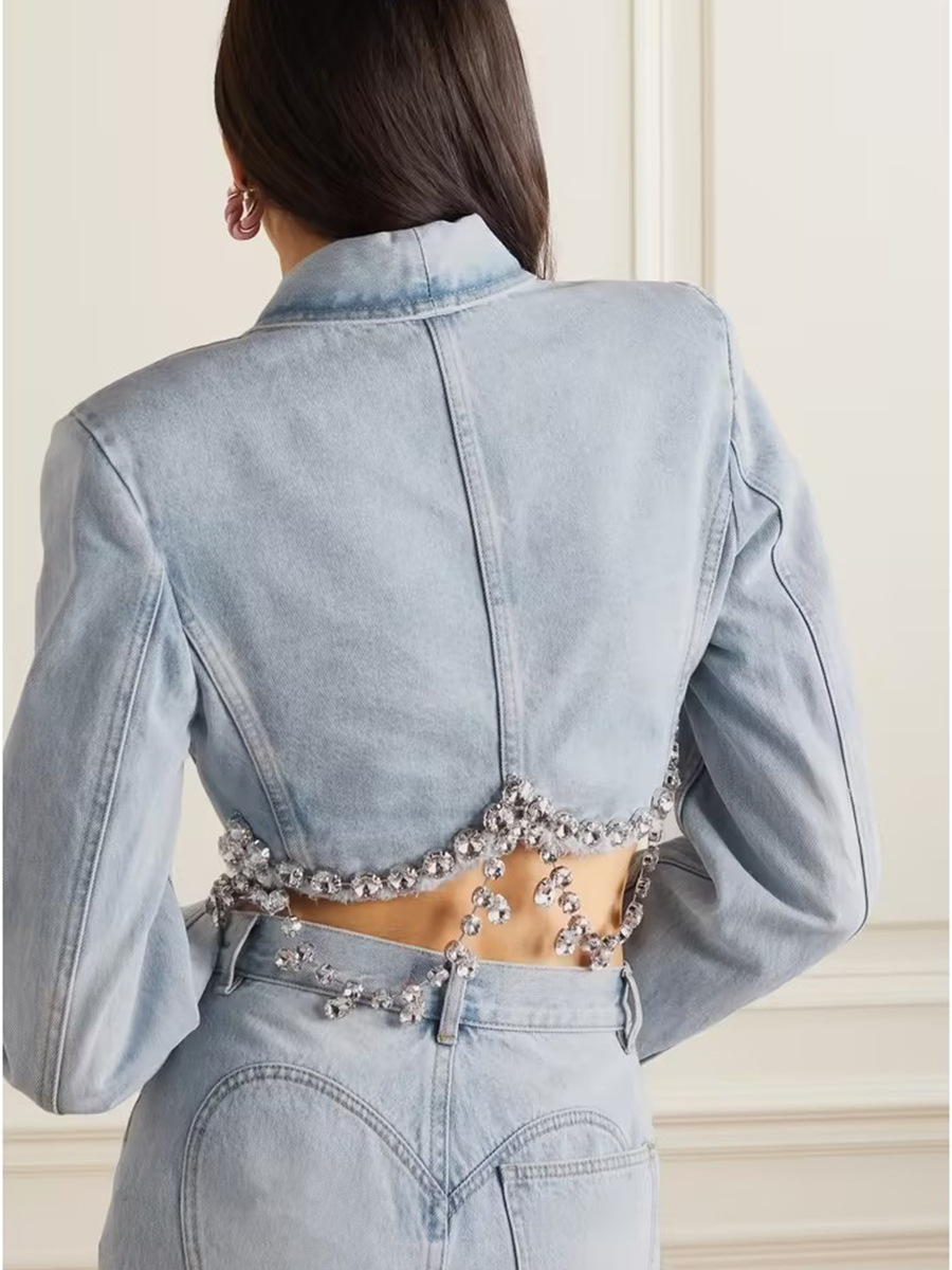Toloer Toloer Chain Decoration Short Coat Fashion Hip Skirt Two-Piece Denim Suit Girl-Outfit Ideas