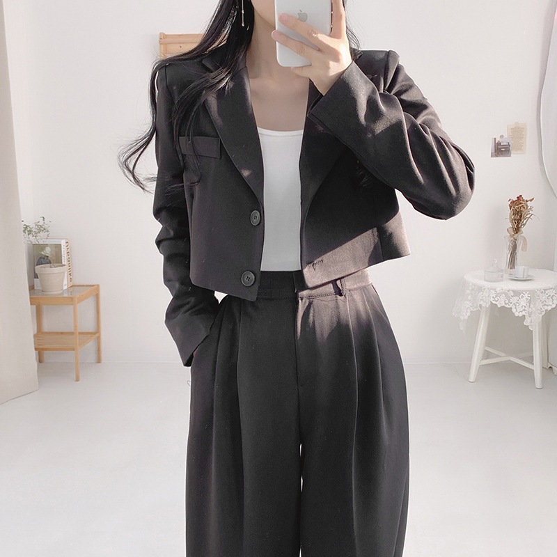Toloer Toloer Chic Spring French Lapel Two Button Small Suit Jacket High Waist Straight Tube Casual Trousers Trousers Women-Outfit Ideas