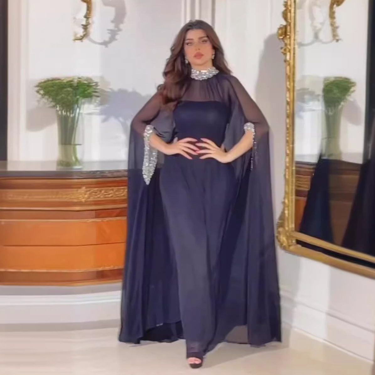 Toloer Toloer Middle East Summer New Chiffon Sequins Splicing Half High Collar Casual Women's Big Skirt Women-Outfit Ideas