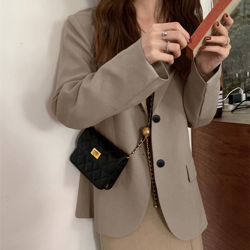 Toloer Toloer New Korean Version Of Autumn And Winter Small Pink Suit Jacket Female Thick Small Suit Suit British Wind Top-Outfit Ideas