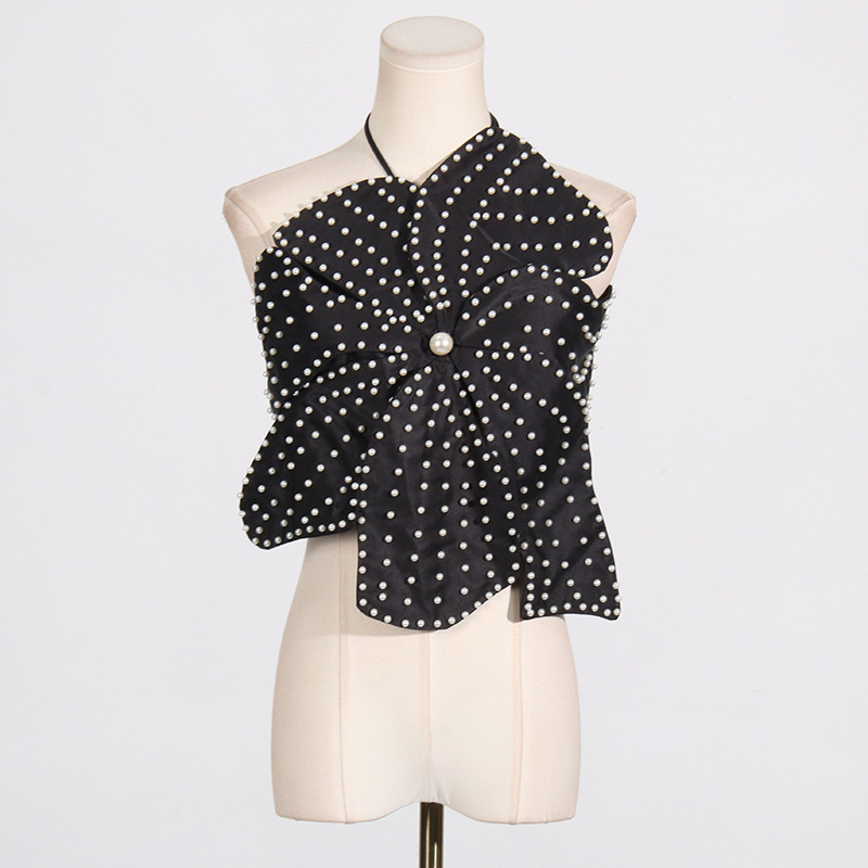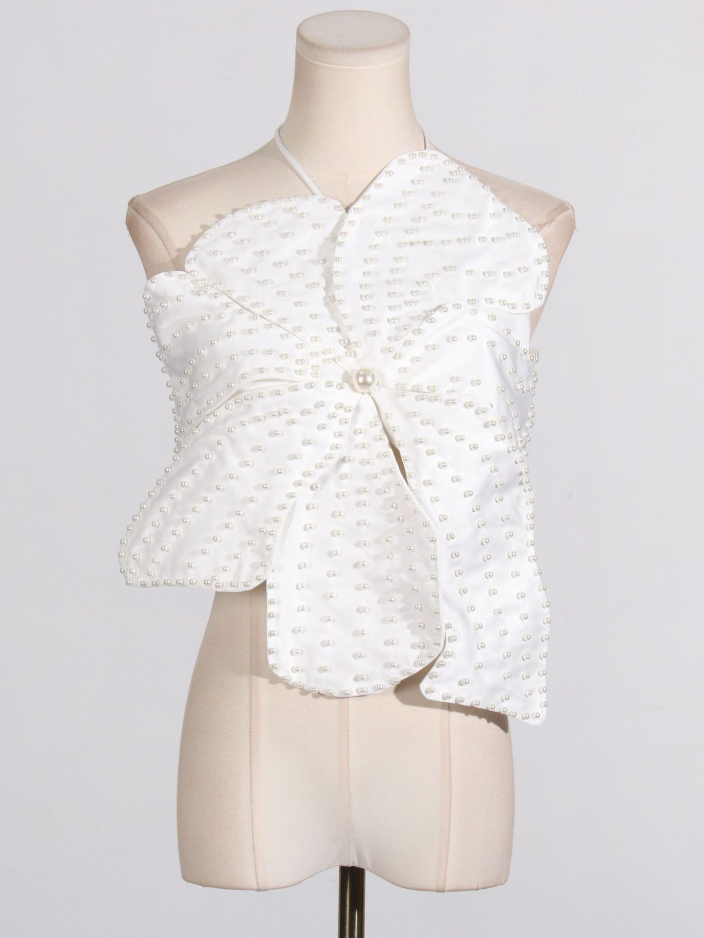 Toloer Toloer New Spring / Summer Sexy Pearl Inlaid Three-Dimensional Flower Splicing Design Sense Hang Neck To Wipe Chest Belt Jacket Female-Outfit Ideas