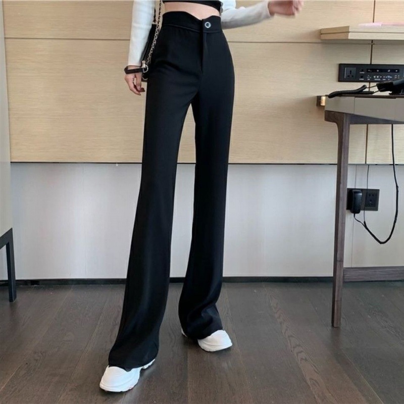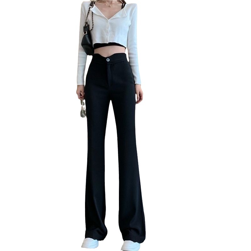 Toloer Toloer Pants Children 2024 Autumn New High Waist Show Thin Micro Bell Bottom Pants Black Hanging Casual Pants Autumn Tide-Outfit Ideas