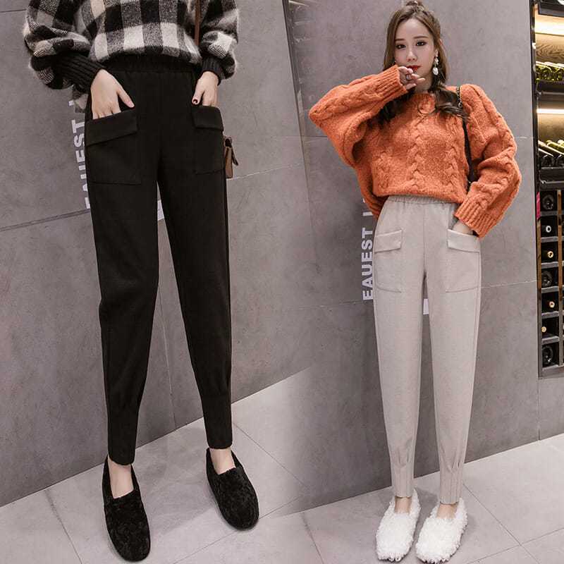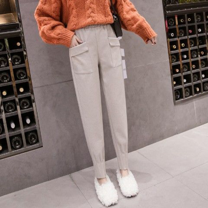 Toloer Toloer Pants Female Fall 2024 New Woolen Pants High Waist Slacks Loose Show Thin Radish Small Feet Tied Leg Pants-Outfit Ideas