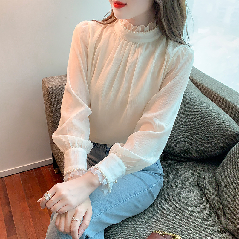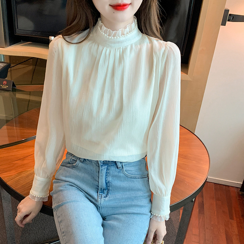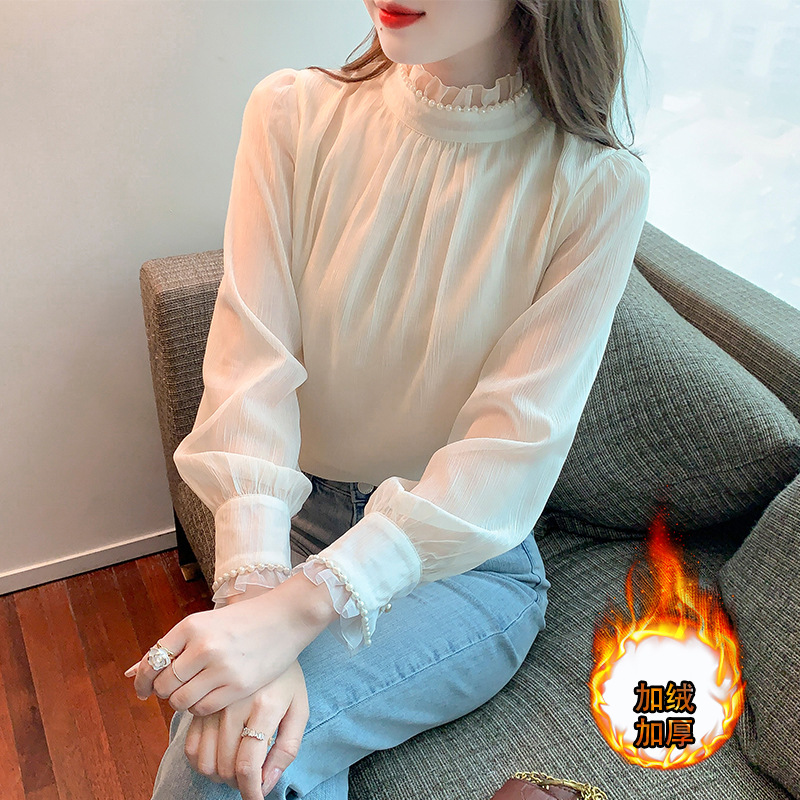 Toloer Toloer Shot Plus Velvet Winter New Sweet Standing Collar Pearl Splicing Decorative Jacket Design Sense Bubble Sleeve Shirt-Outfit Ideas