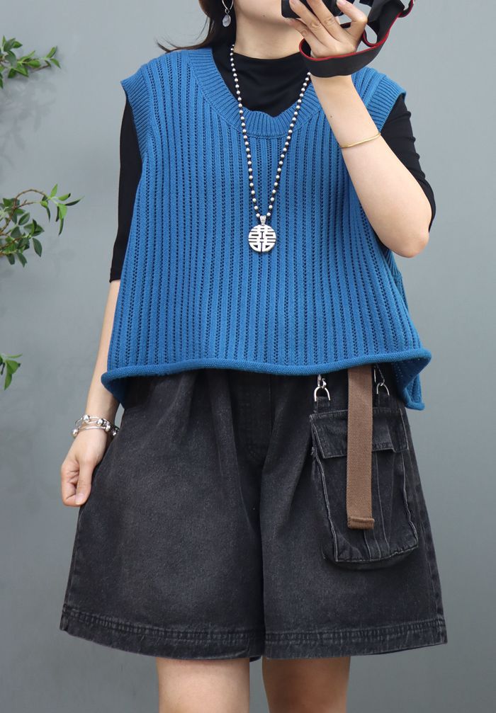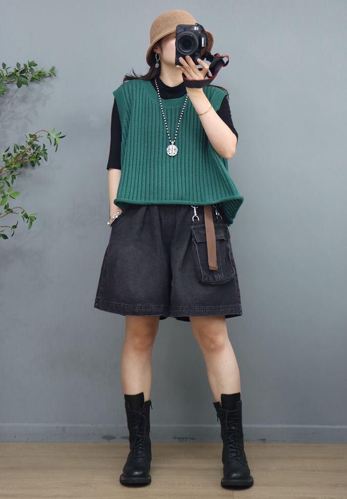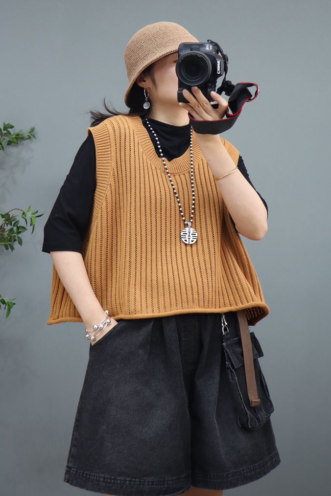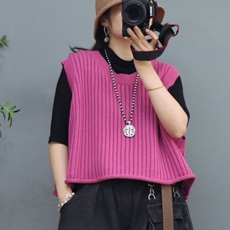 Toloer Toloer Spring And Autumn New Fold Wear Solid Color Horse Clip Vest Retro Loose Short Round Collar Knit Vest Woman-Outfit Ideas
