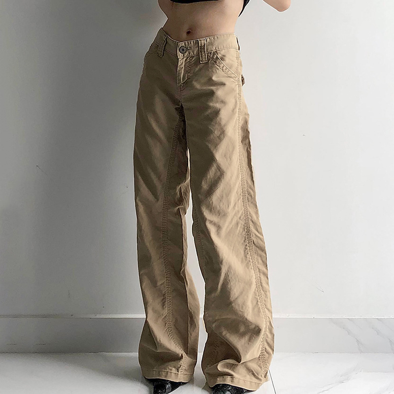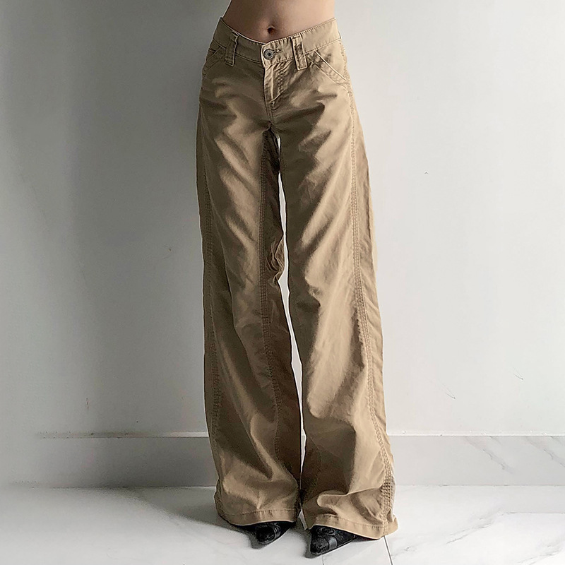 Toloer Toloer Style Cool Sister Simple Basic Straight Leg Casual Pants Low Waist Loose Shrink Pleated Wide Leg Cargo Pants-Outfit Ideas