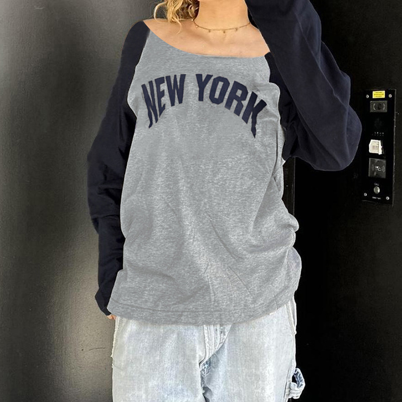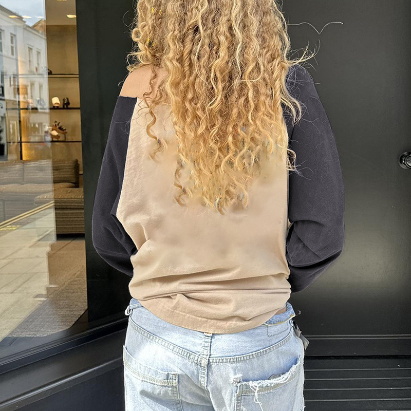 Toloer Toloer Style Patchwork Color Digital Print Long-Sleeved T-Shirt Loose Shoulder And Thin Top-Outfit Ideas