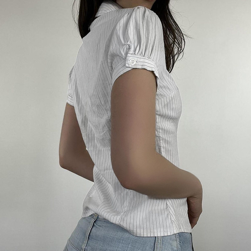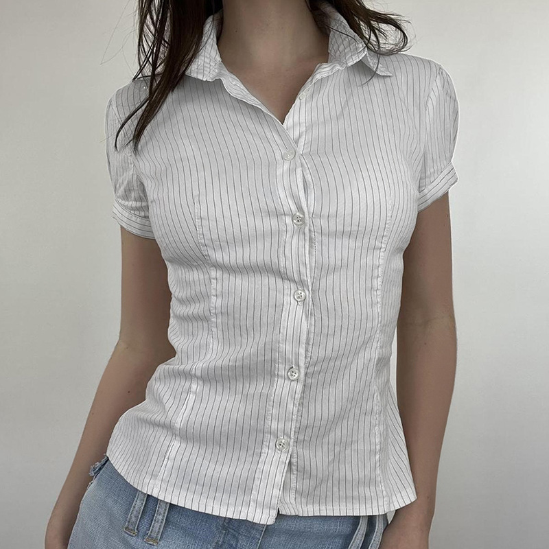 Toloer Toloer Style Short Sleeve Striped Base Shirt POLO Collar Slim Slim Single Breasted Joker Top-Outfit Ideas