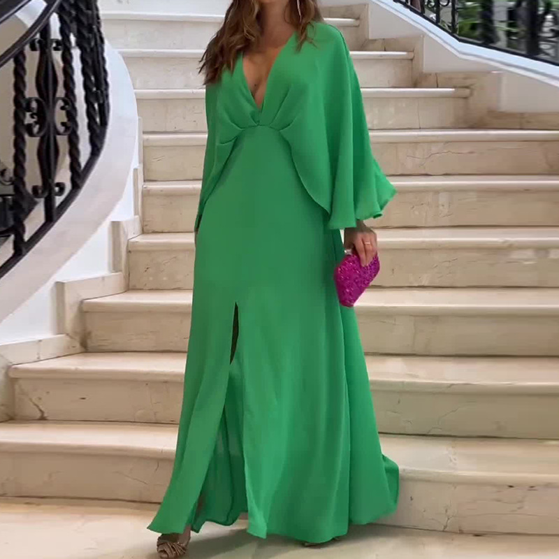 Toloer Toloer Summer New Leisure Light Luxury Home Deep V Pure Color Loose Dress-Outfit Ideas
