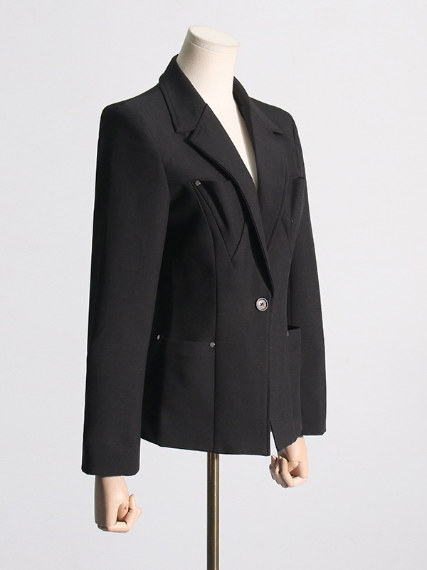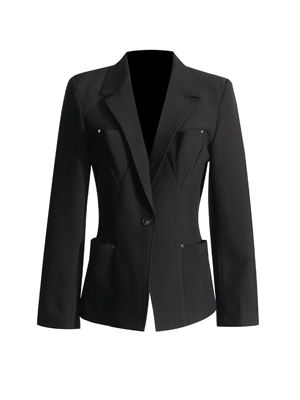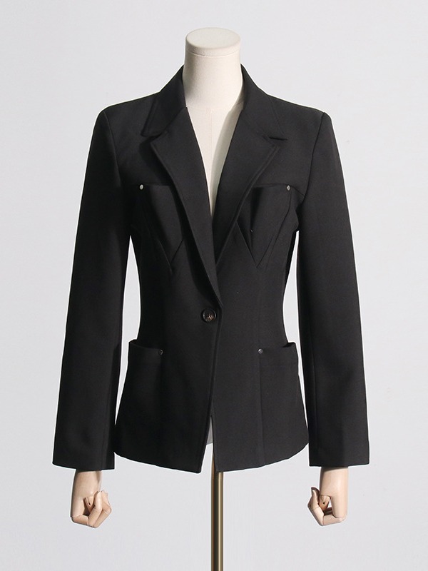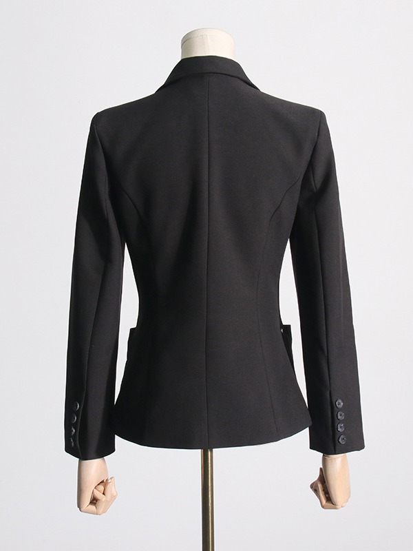 Toloer Toloer Temperament Casual Small Suit Female 2024 Spring New Fashion V Collar Long Sleeve Design Feeling Small Black Coat-Outfit Ideas