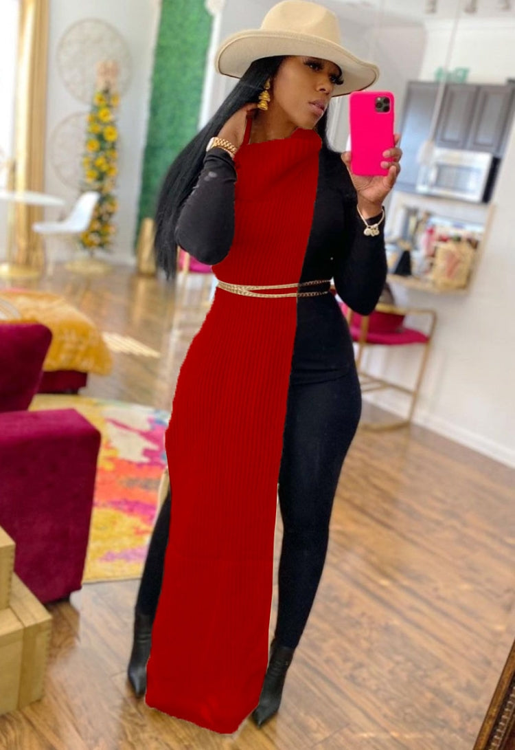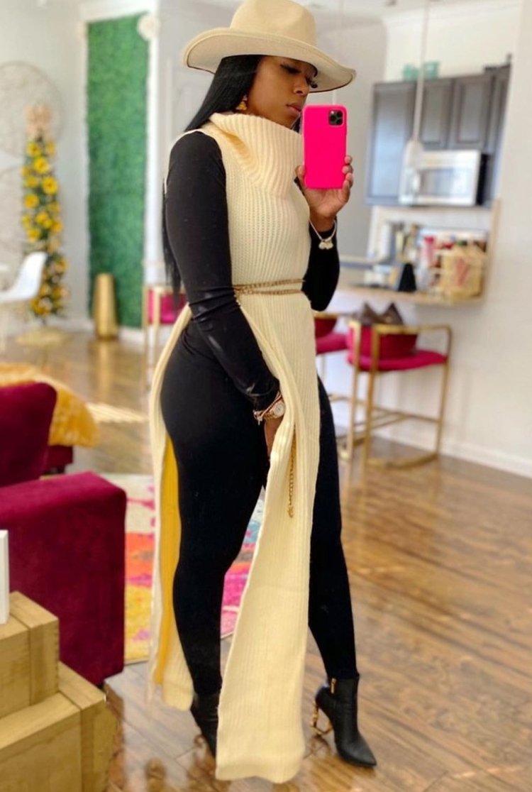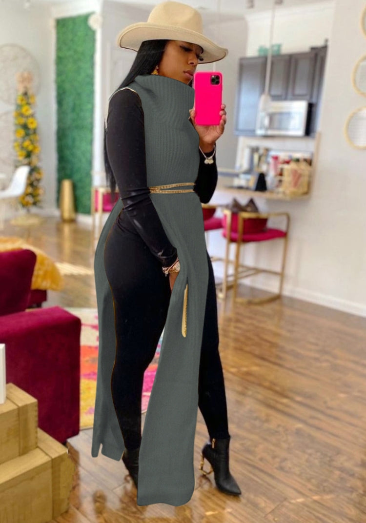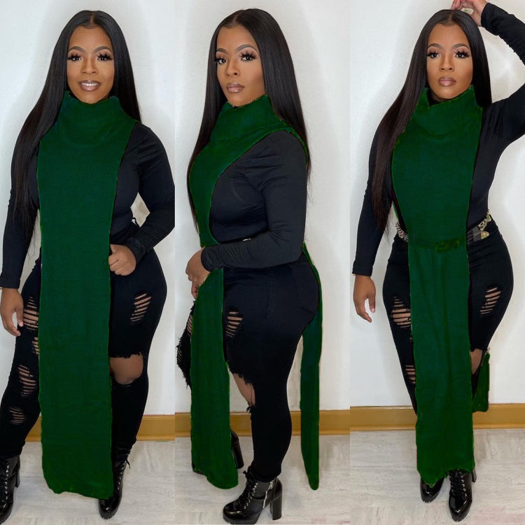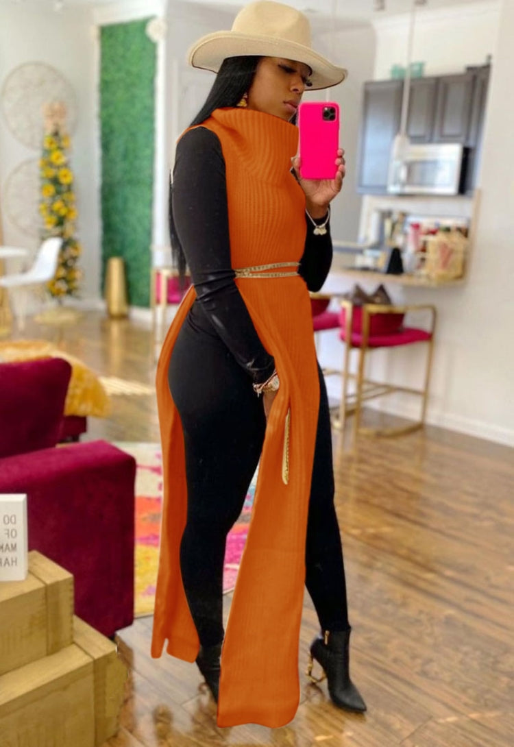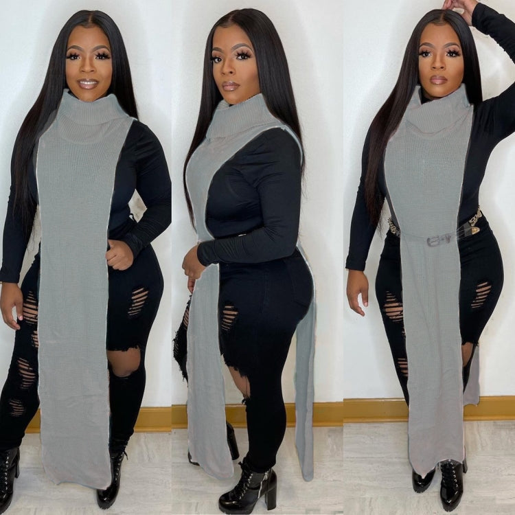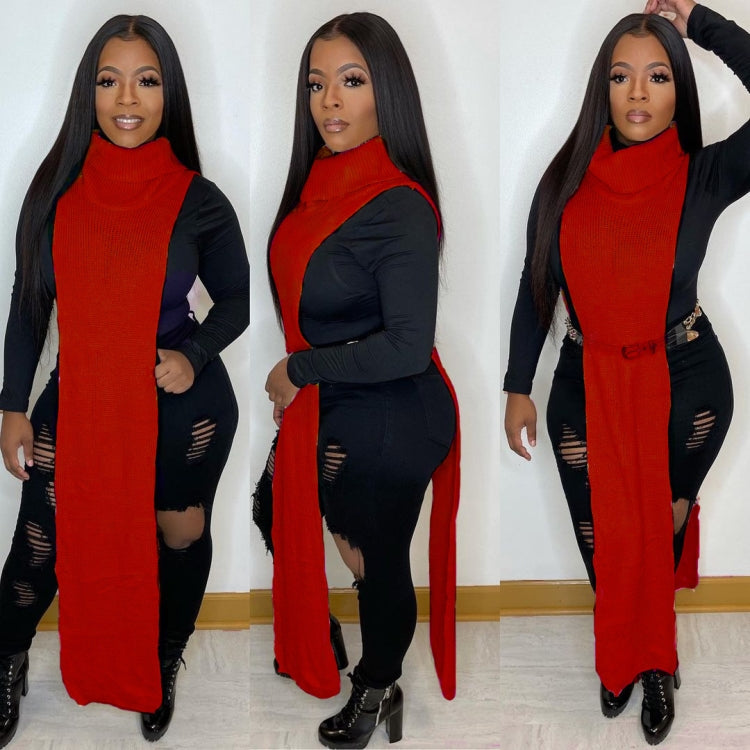 Toloer Toloer Turtleneck Side Slit Long Sweater Top 102-0-Outfit Ideas