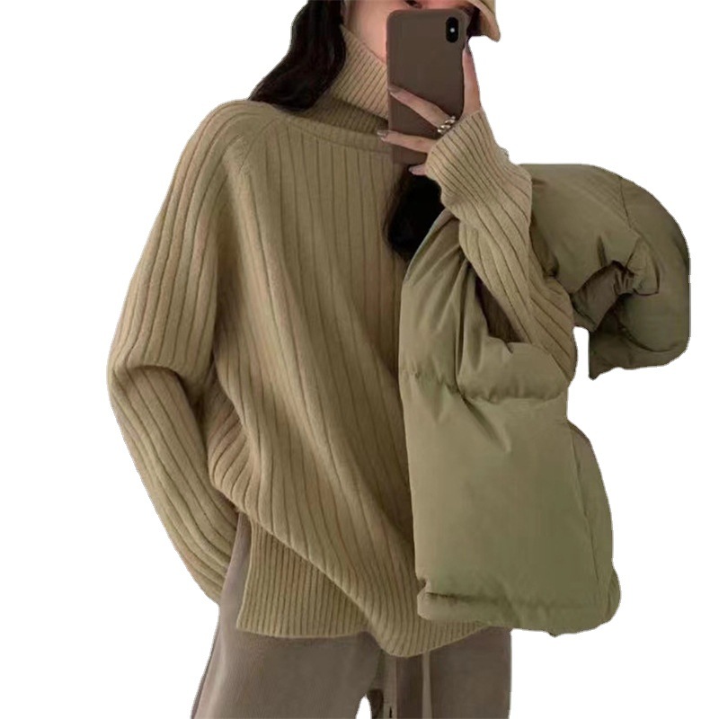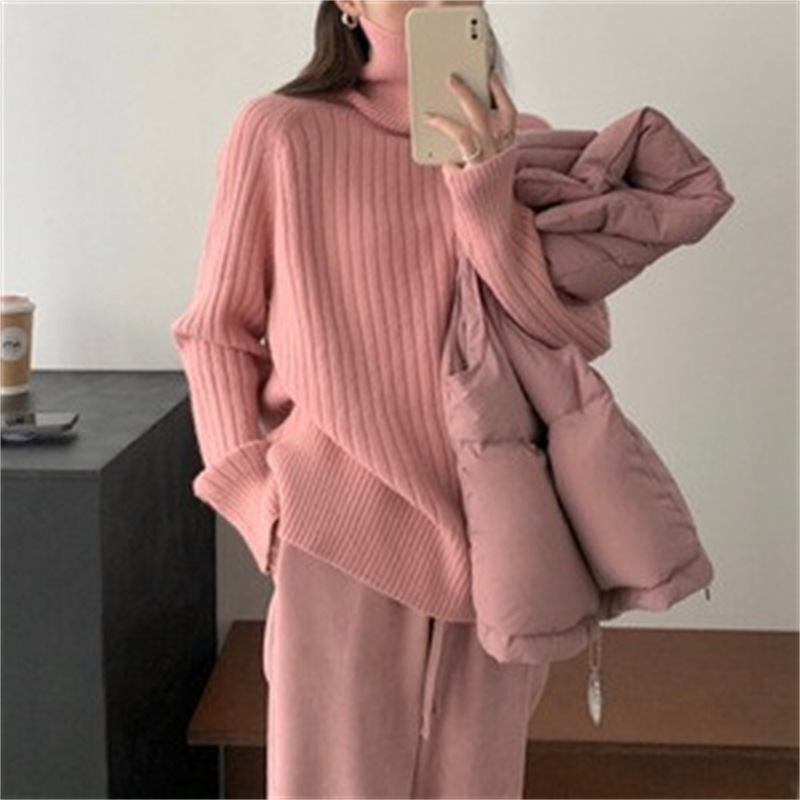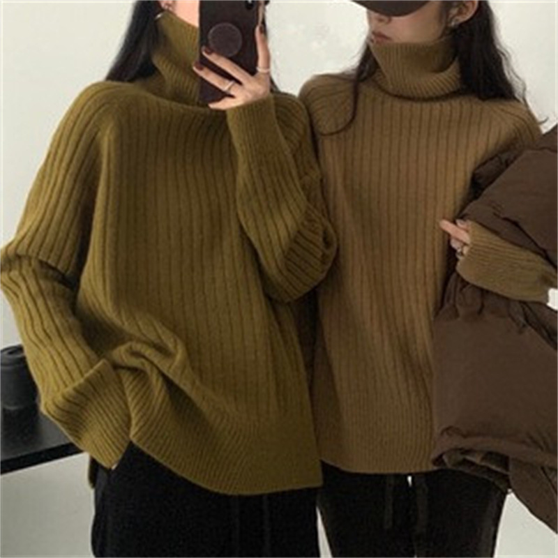 Toloer Toloer Version Contracted High Neck Add Thick Sweater Female Pit Loose Lazy Knit Sweater New All-Match Casual Jacket-Outfit Ideas