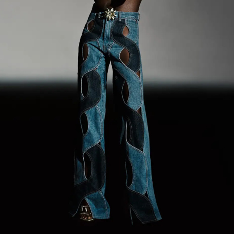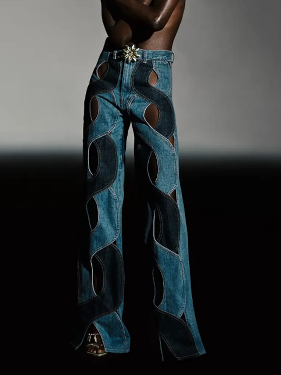Toloer Toloer Wind Design Sense Straight Pants 2024 Spring And Autumn New Fashion Hollow Out Color Twist Jeans Female-Outfit Ideas