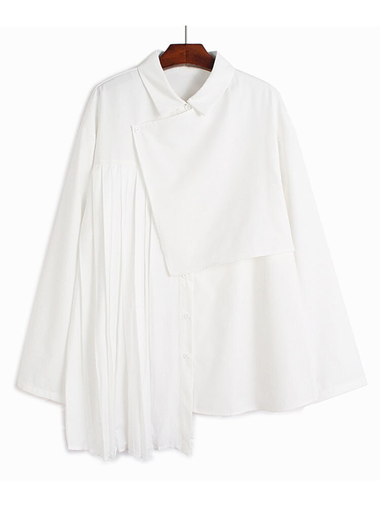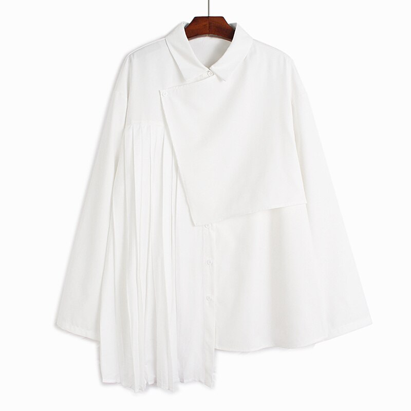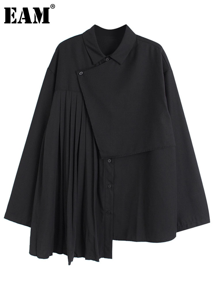 Toloer Toloer Women Black Irregular Pleated Big Size Blouse New Lapel Long Sleeve Loose Fit Shirt Fashion Spring Autumn 2023 1DE7242 1127-1-Outfit Ideas