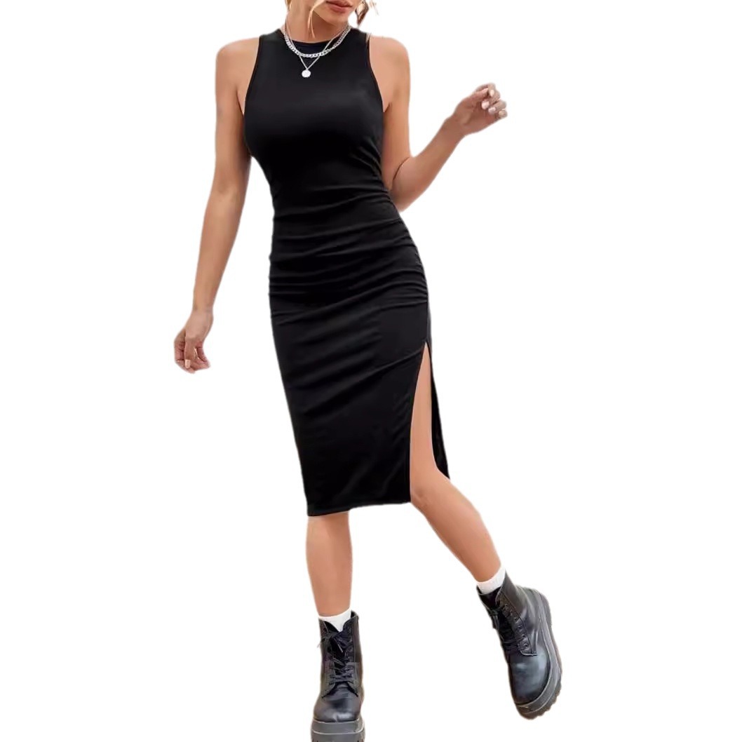 Toloer Toloer Women's Wear Summer 2024 New Round Collar Sleeveless Fanny Pack Hip Slit Dress Children-Outfit Ideas