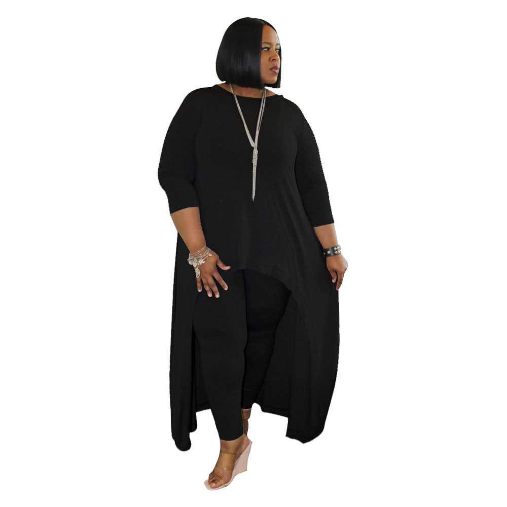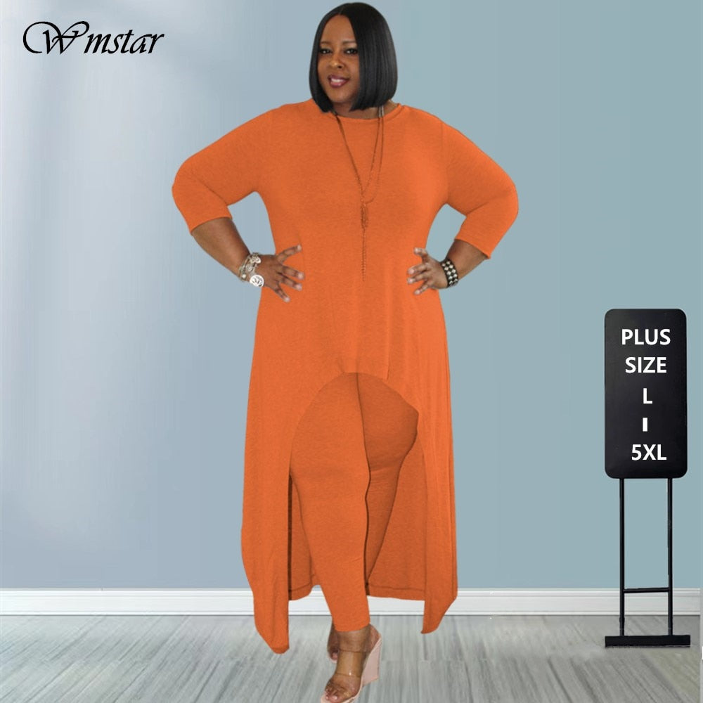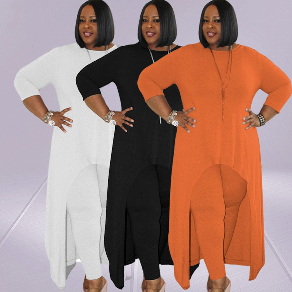 Two Piece Set Plus Size Women Fall Clothing 2021 Solid Long Style Top Leggings Casual Fashion Streetwear Wholesale Dropshipping