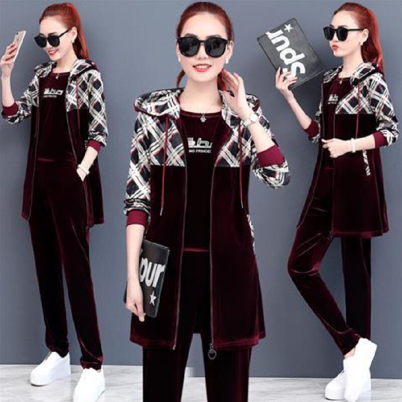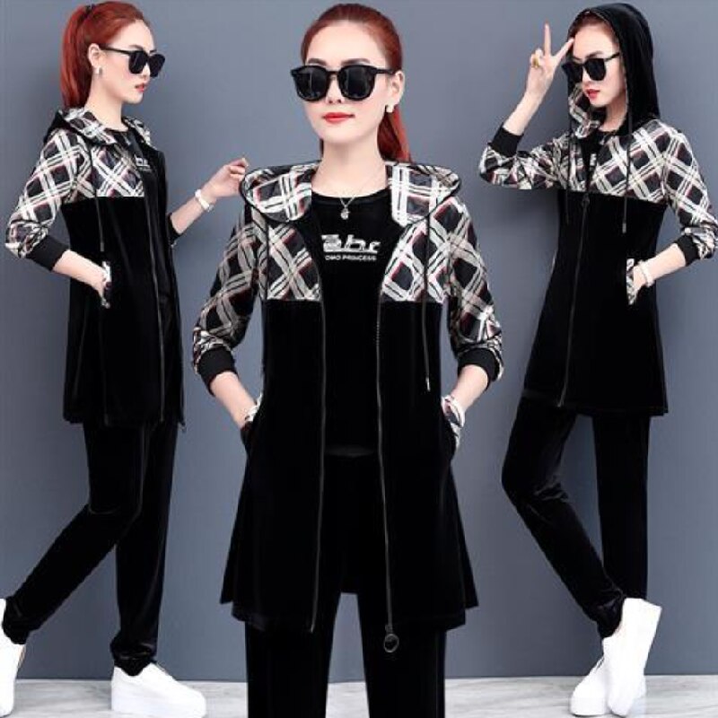 Velvet sports casual suit women long sleeve spring and autumn thin fashion 2021 new three-piece suit temperament fashion