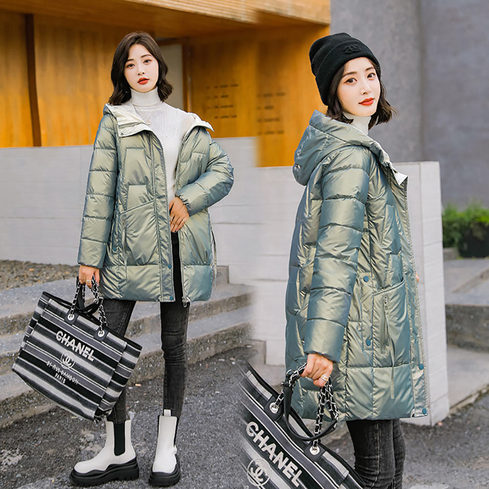 Vielleicht New Winter Thicken Women's Puffer Coat Glossy Warm Hooded Long Cotton Padded Jacket Ladies Winter Down Cotton Parkas
