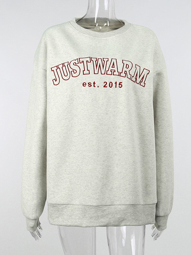 WannaThis Letter Embroidered Sweatshirt Women Loose Casual Long Sleeve Pullover Autumn Grey Cotton Daily Wear Oversized Top 2021